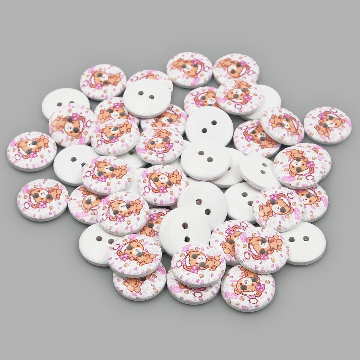Пуговицы 'Мультяшные персонажи' 18 мм (28L), 50 шт, 2 прокола, дерево, Айрис (Сладкая парочка)