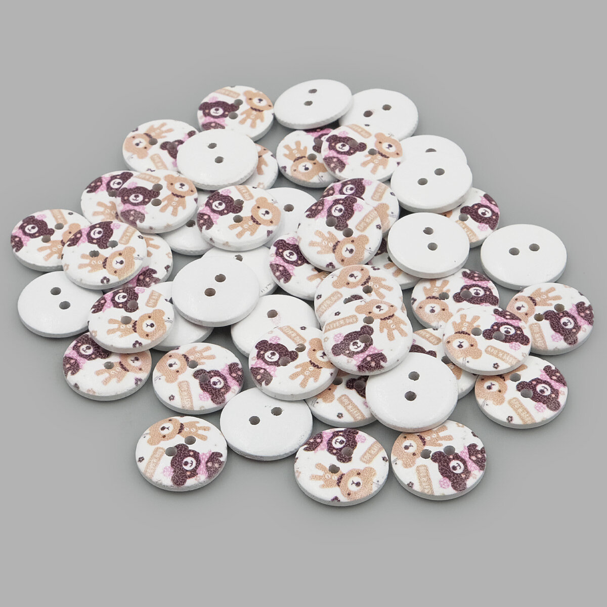 Пуговицы 'Мультяшные персонажи' 18 мм (28L), 50 шт, 2 прокола, дерево, Айрис (Мишки 34)