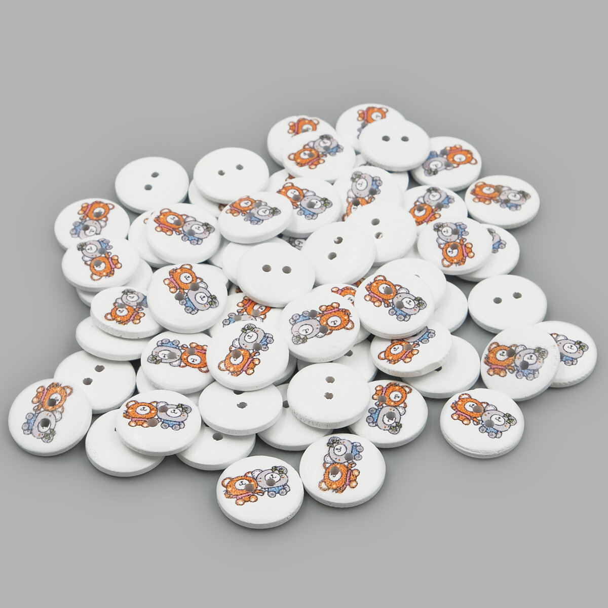 Купить Пуговицы 'Мультяшные персонажи' 18 мм (28L), 50 шт, 2 прокола, дерево, Айрис (Мишки 34)