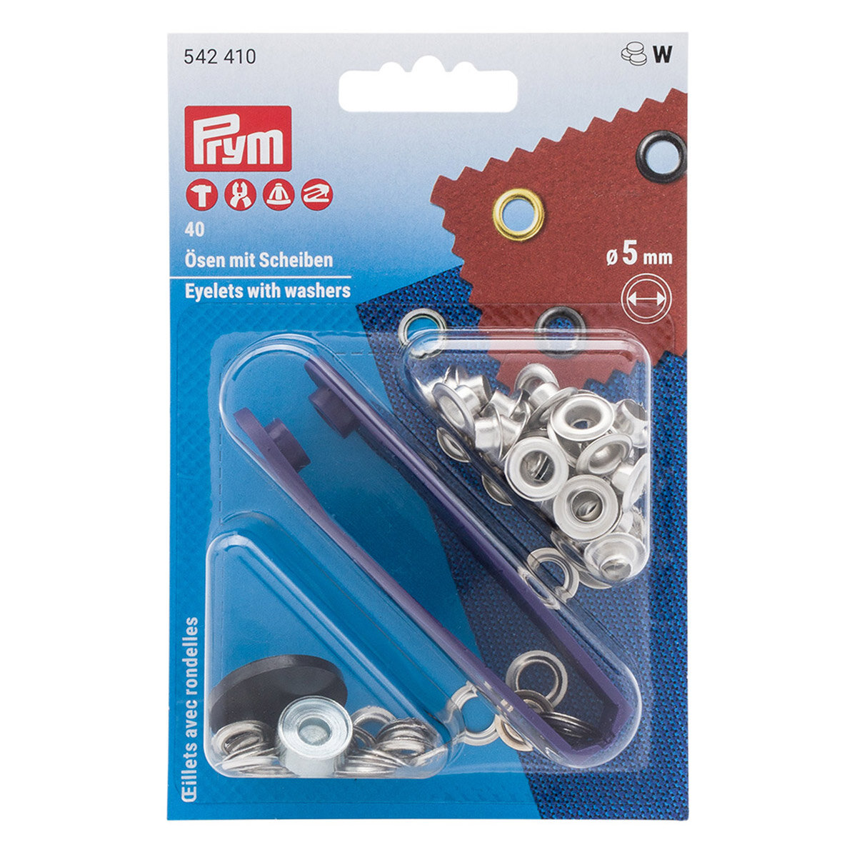 Купить Люверсы с инструментом для установки, 5 мм, 40 шт, латунь, Prym (серебристый)