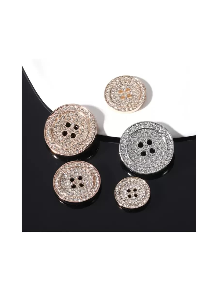 Купить Набор серебристых декоративных пуговиц с кристаллами 5 шт