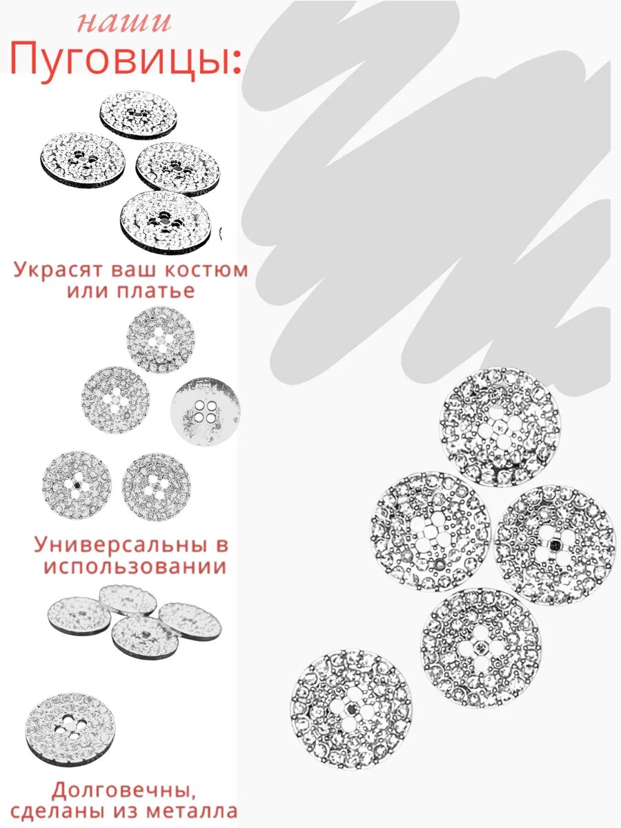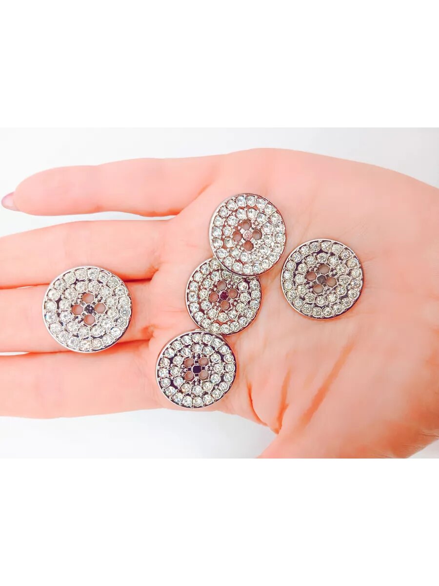 Набор серебристых пуговиц с кристаллами 5 шт интересное:
