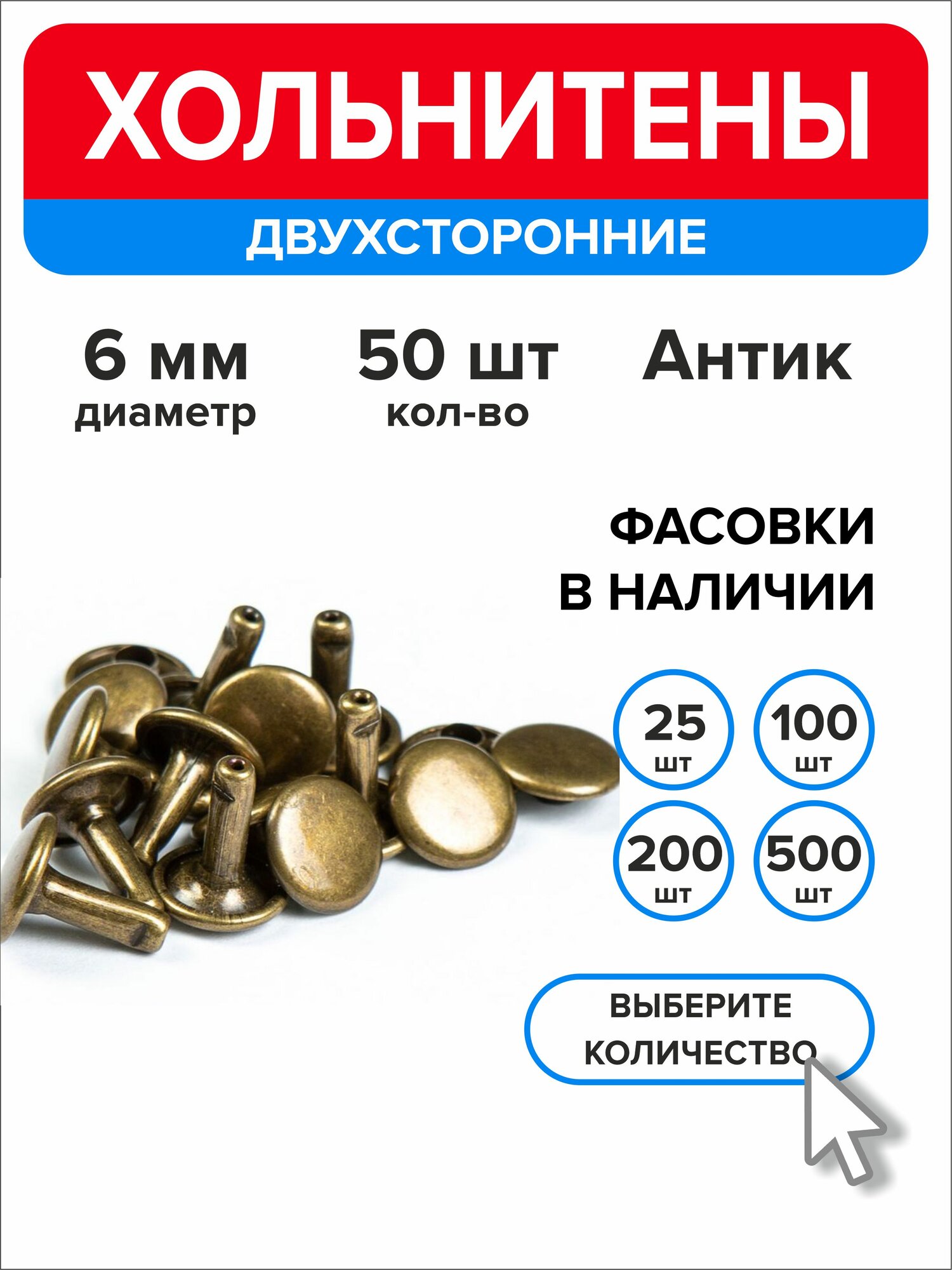 СохранитьХольнитены двухсторонние 6 мм, заклепки, бронзовый 50 штук интересное: