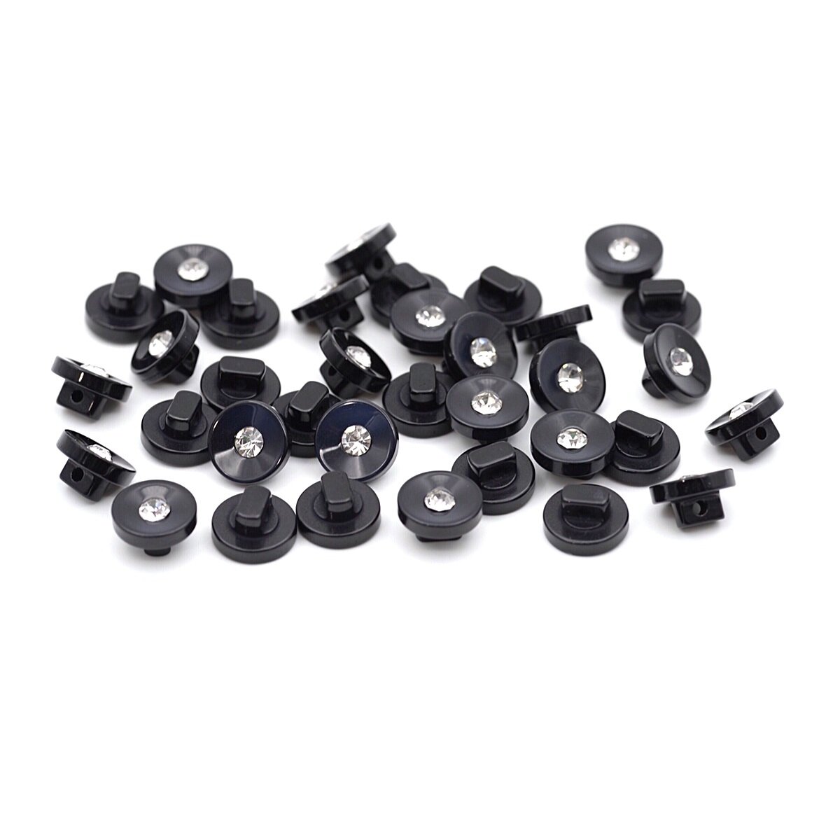 Купить PS24 Пуговица со стразом 16L (10 мм), на ножке, пластик (черный), 36 шт