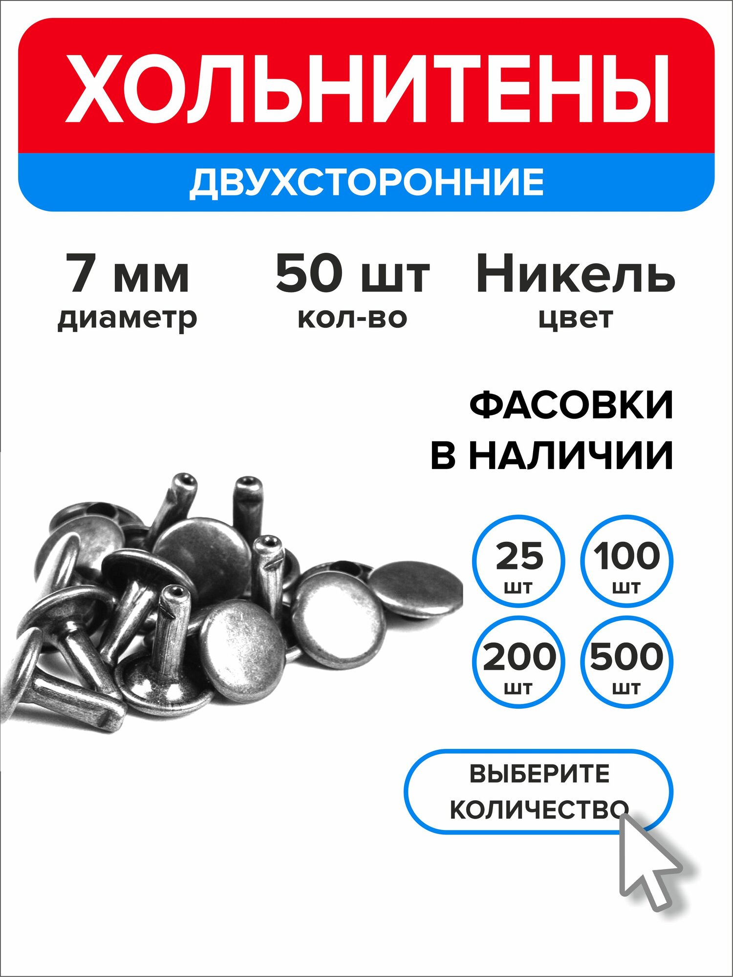 Хольнитены двухсторонние 7 мм, заклепки темный никель 50 штук