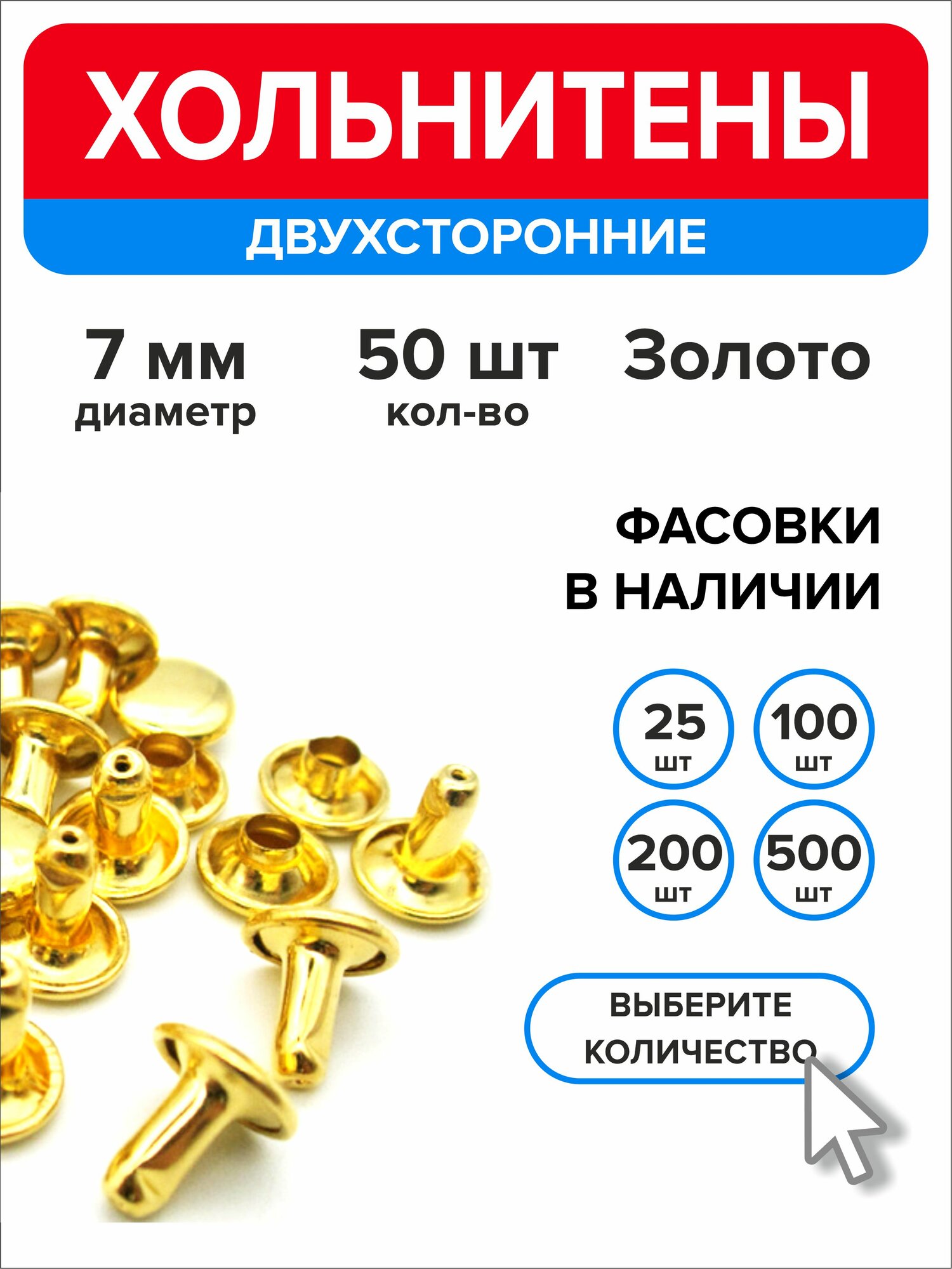 Хольнитены двухсторонние 7 мм, заклепки золотистый 25 штук