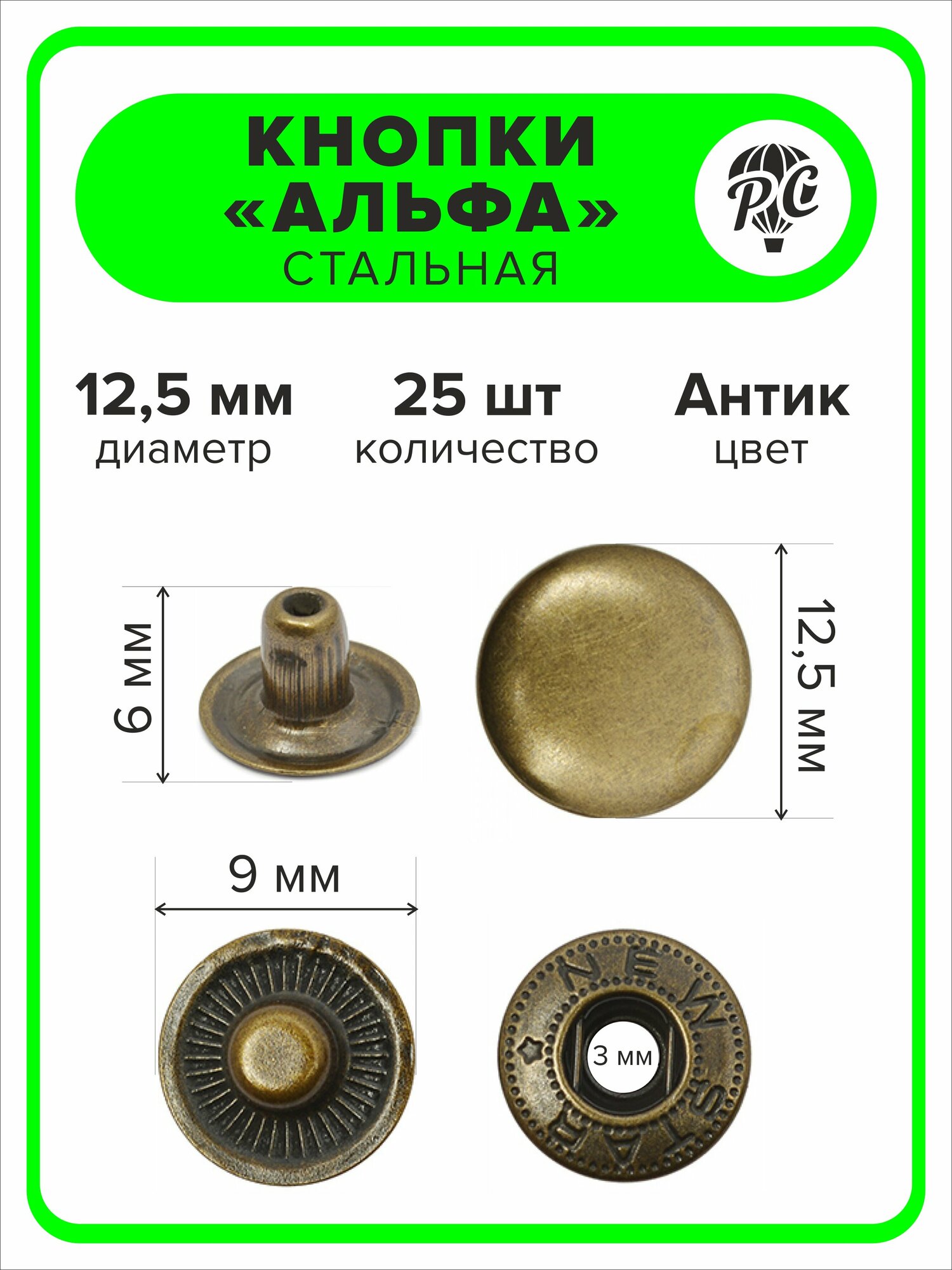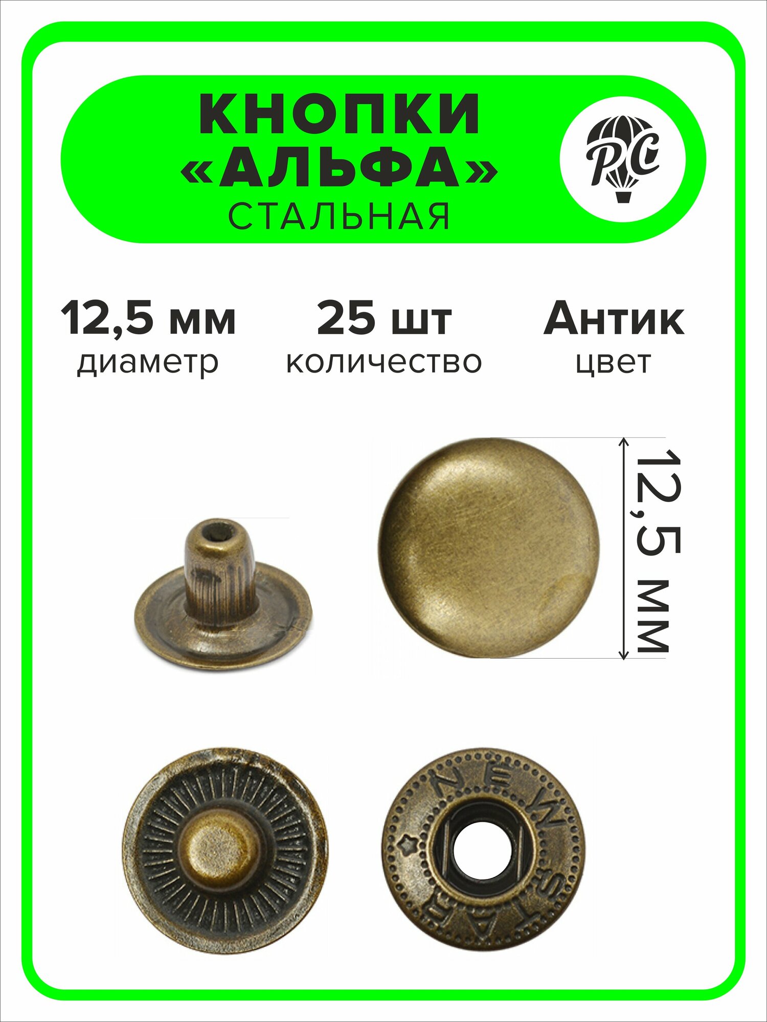 Кнопки "Альфа" 12,5 мм для одежды антик, 25 штук интересное: