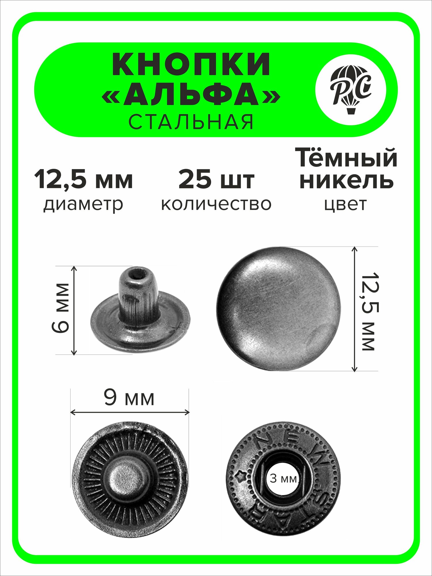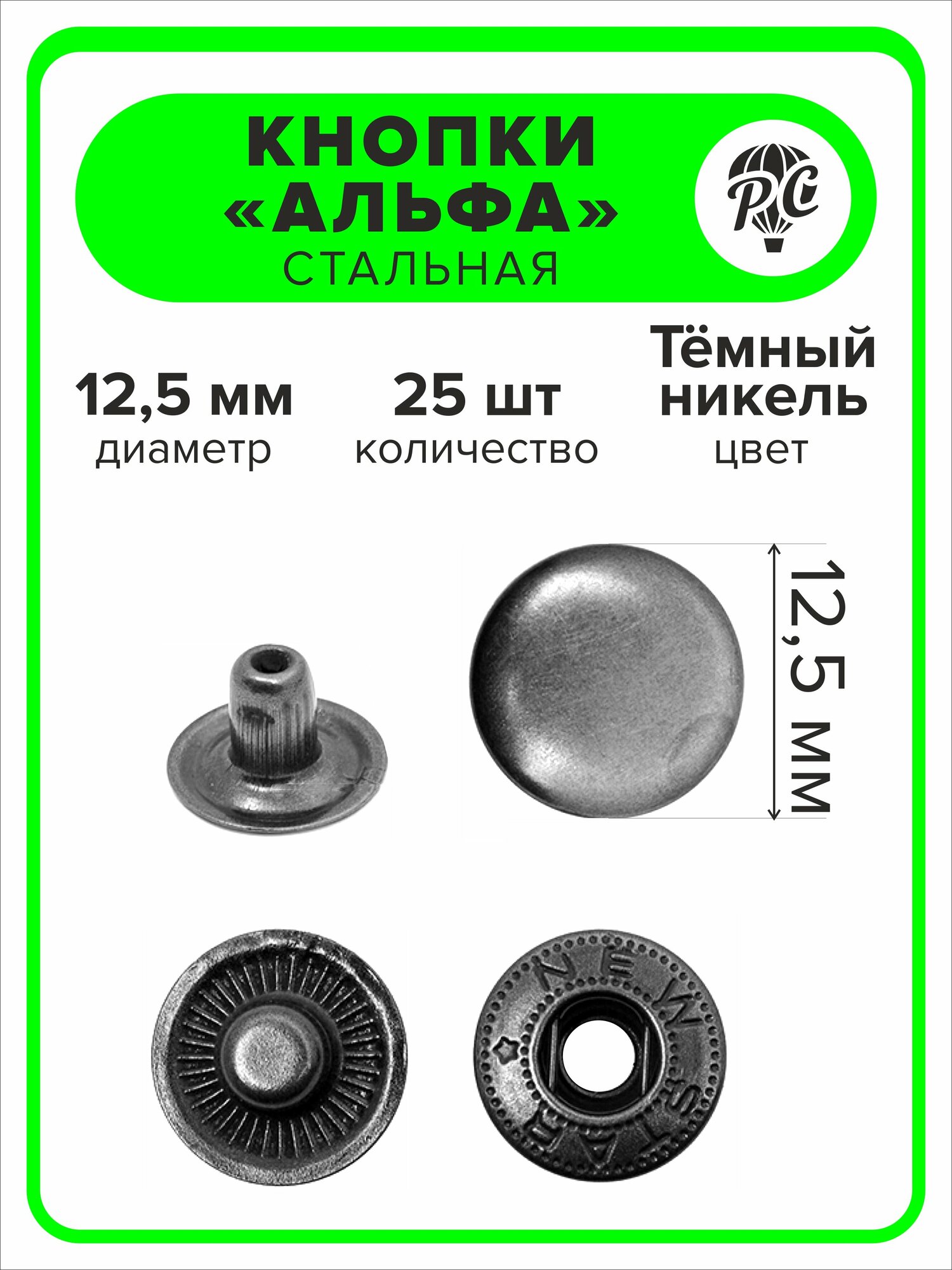 Кнопки "Альфа" 12,5 мм для одежды темный никель, 25 штук интересное: