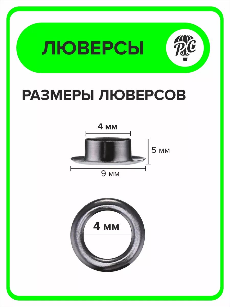 Люверсы металлические 4 мм для одежды, темный никель 50 штук