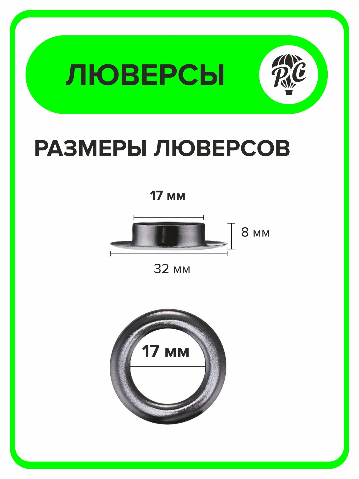 Купить Люверсы металлические 17 мм для одежды темный никель, 25 штук