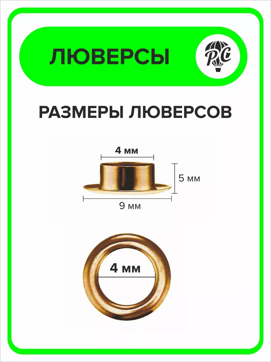 Люверсы металлические 4 мм для одежды, золотистый 50 штук