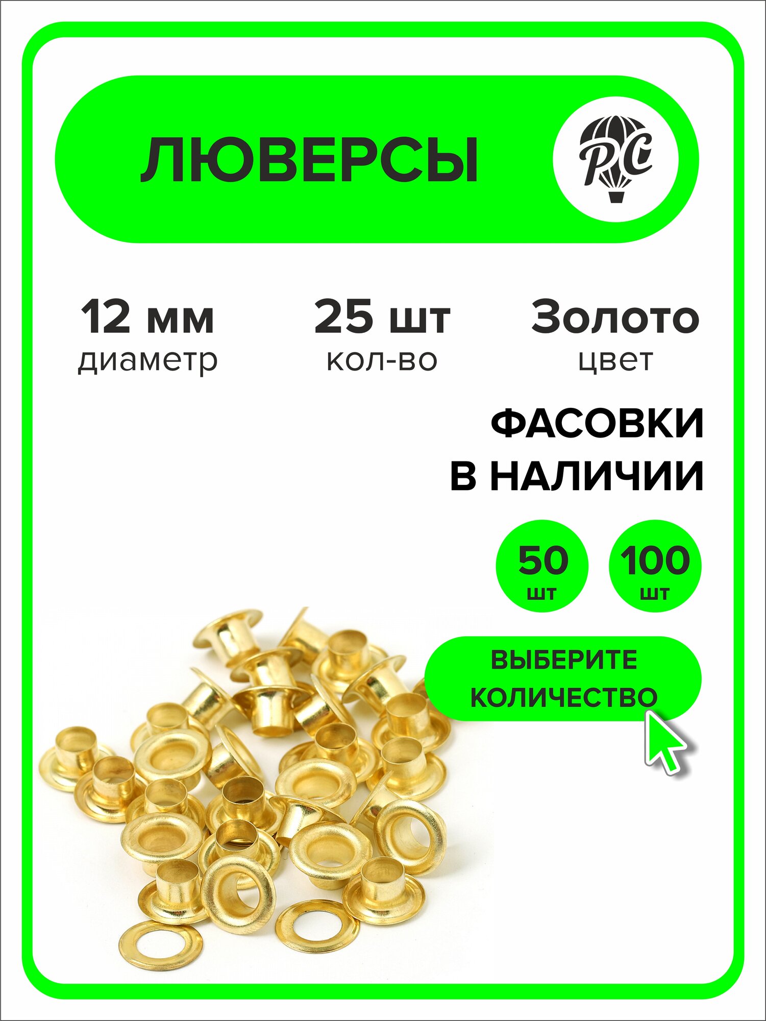 Купить Люверсы металлические 12 мм для одежды золото, 25 штук