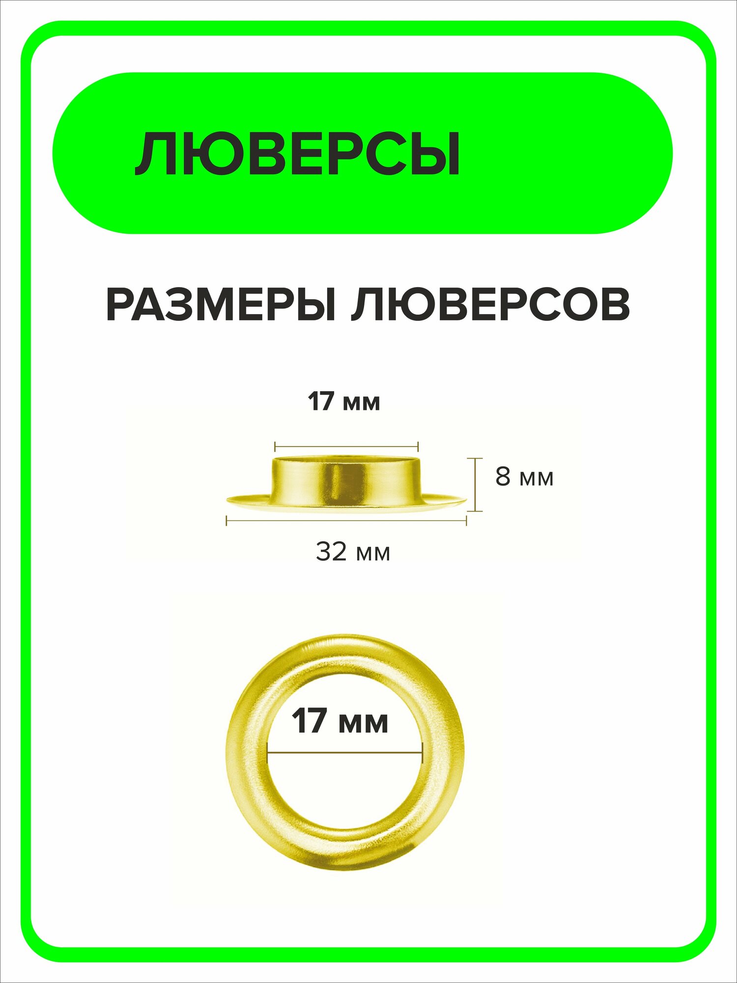 Ниже Вы можете прочитать отзывы на Люверсы металлические 17 мм для одежды, золотистый 25 штук, ознакомится с подробными характеристиками, посмотреть интересные обзоры и фотографии на Люверсы металлические 17 мм для одежды, золотистый 25 штук.