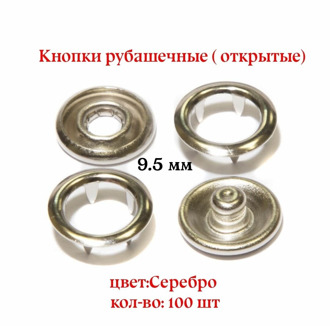 Купить Кнопки рубашечные, открытые 9.5 мм, цвет: Никель, 100 шт