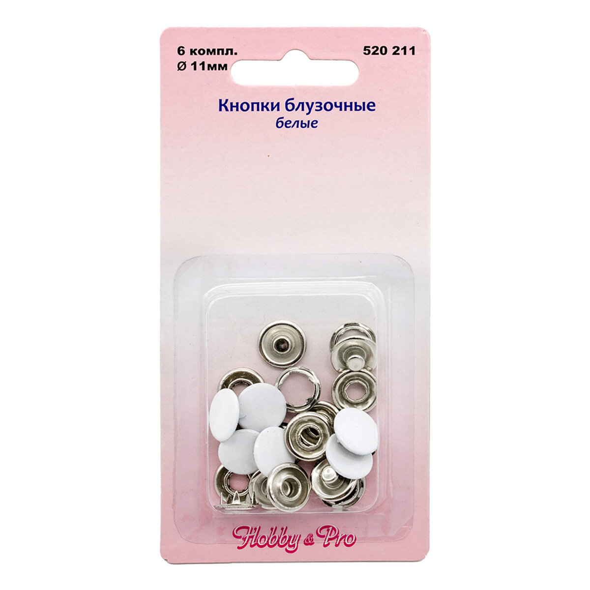Купить Кнопки блузочные металлические Hobby&Pro, 520211, 11 мм, с пластиковой шляпкой, 6 комплектов, белые