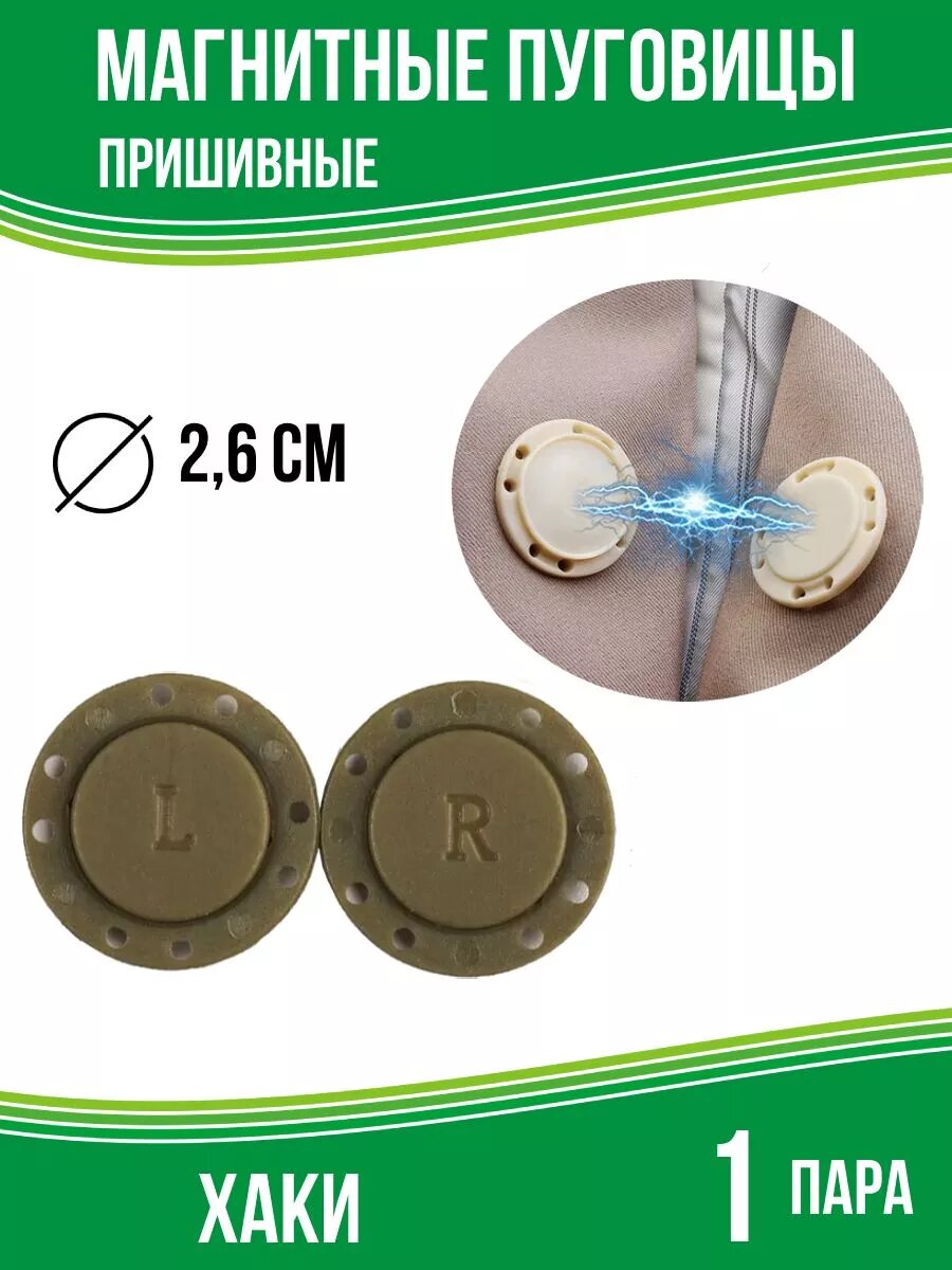 Купить Пуговица на магните пришивная для одежды, хаки 1 шт