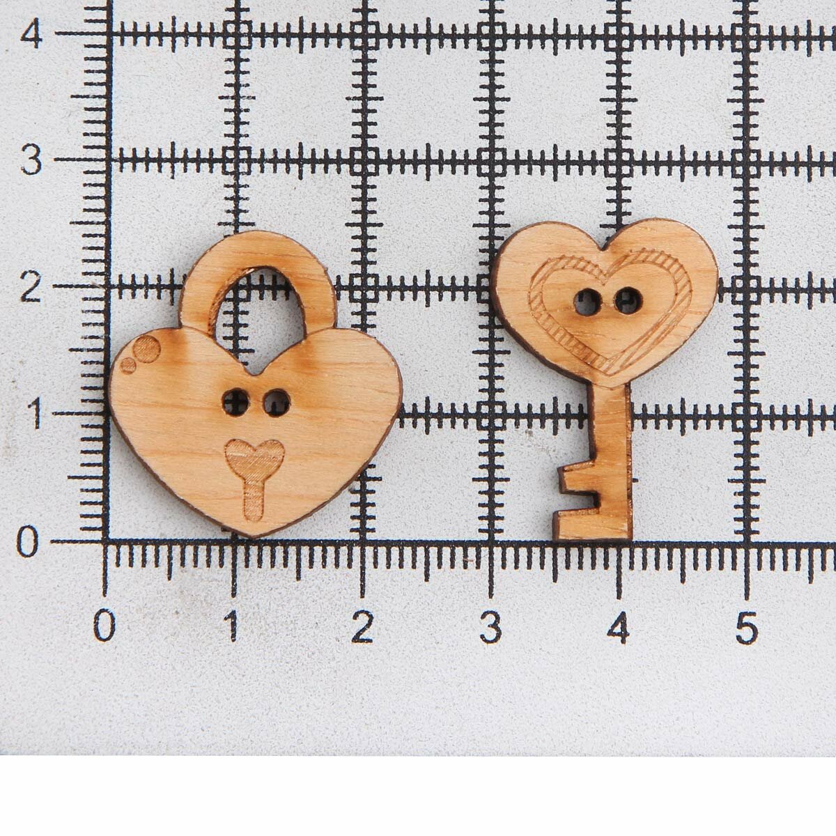 Купить Пуговицы фигурные Magic Buttons 'Замок и ключ', 24*23мм и 25*18мм, 2 прокола, дерево, 2 шт