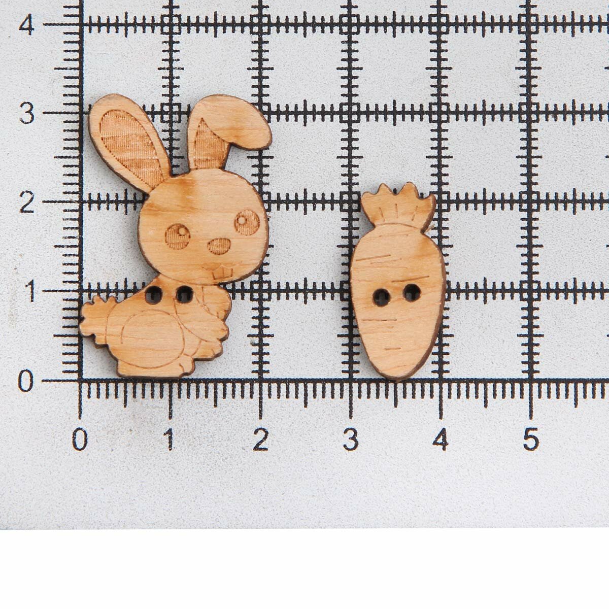 Купить Пуговицы фигурные Magic Buttons 'Зайчик и морковь', 32*20мм и 22*10мм, 2 прокола, дерево, 2 шт