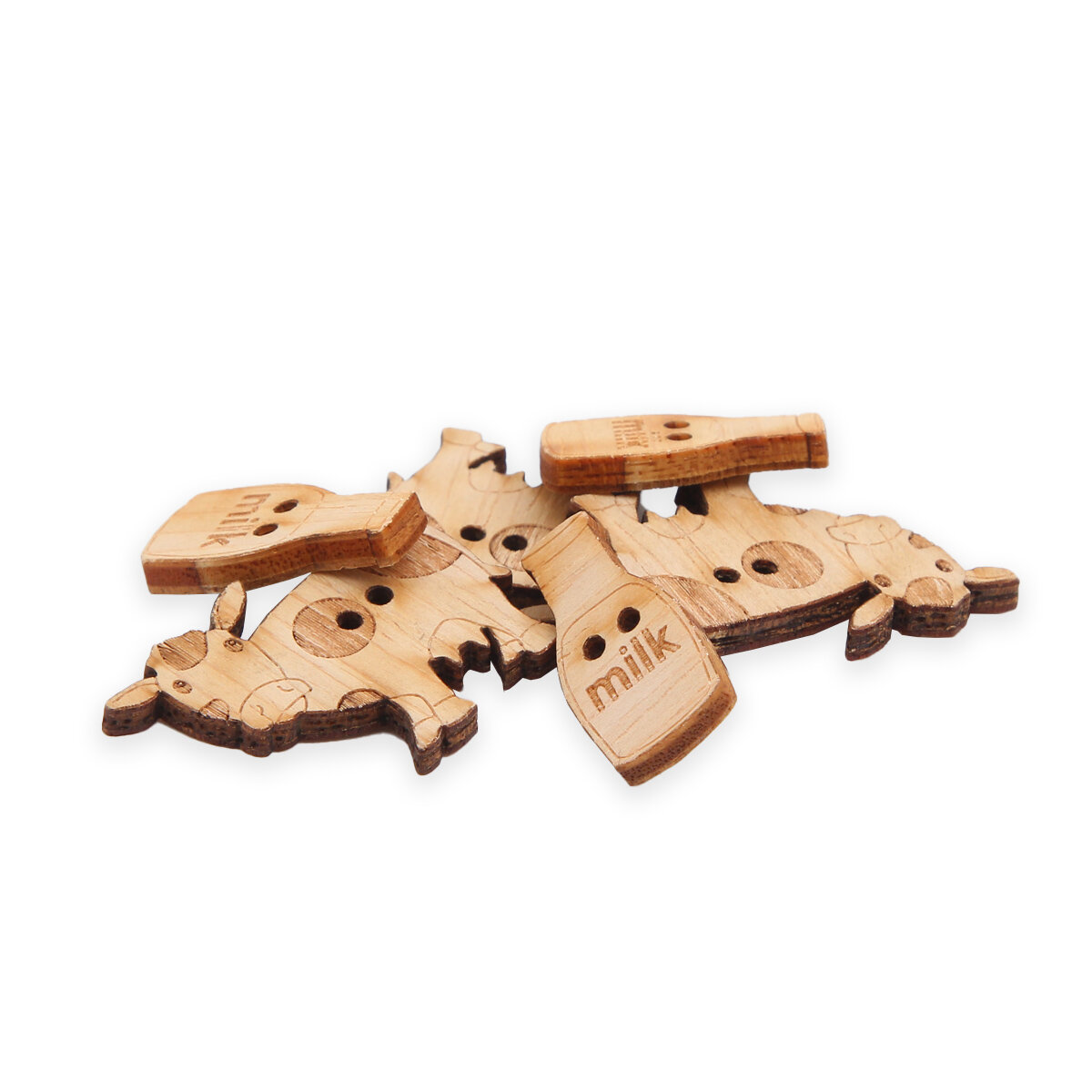 Купить Пуговицы фигурные Magic Buttons 'Корова и молоко', 30*23мм и 23*12мм, 2 прокола, дерево, 6 шт