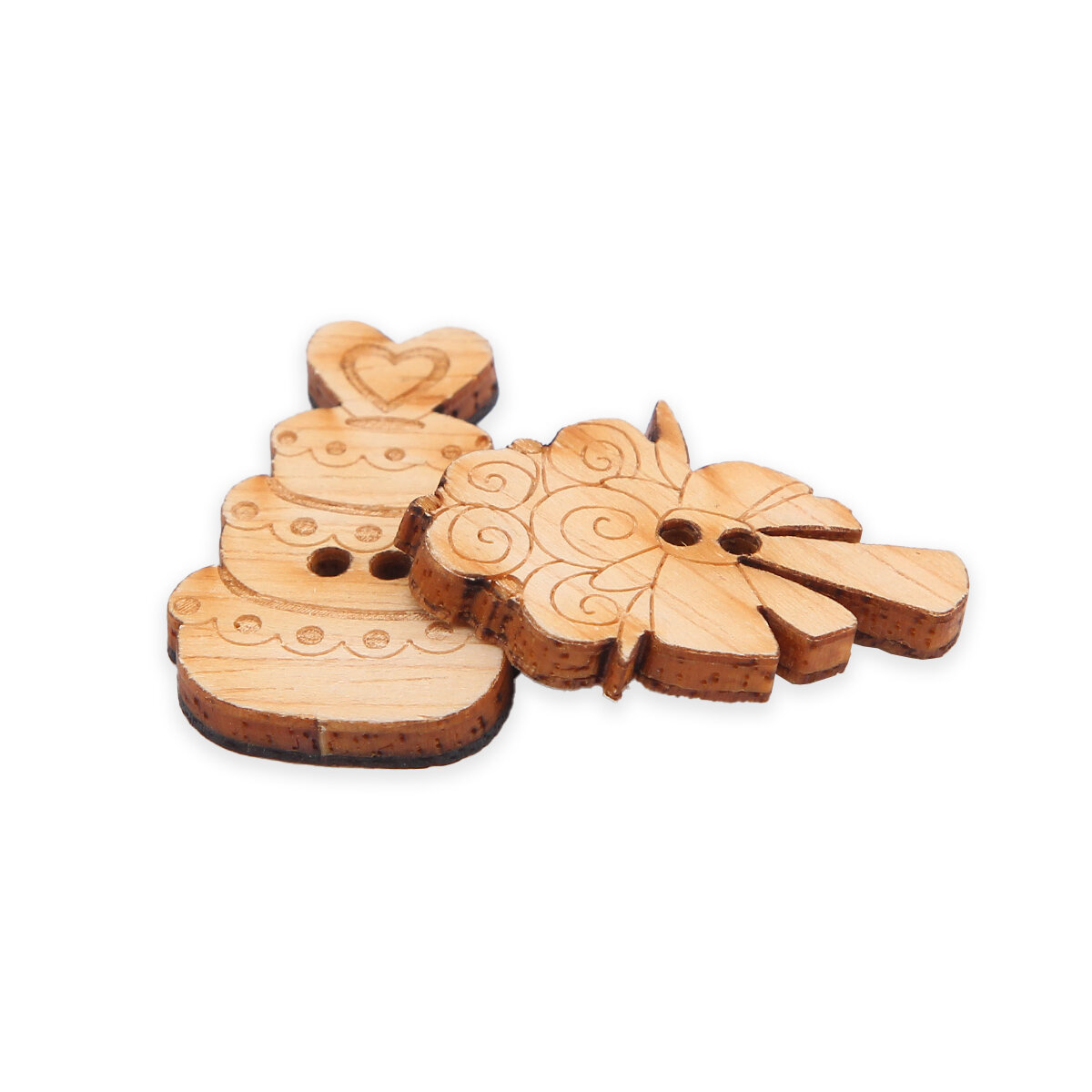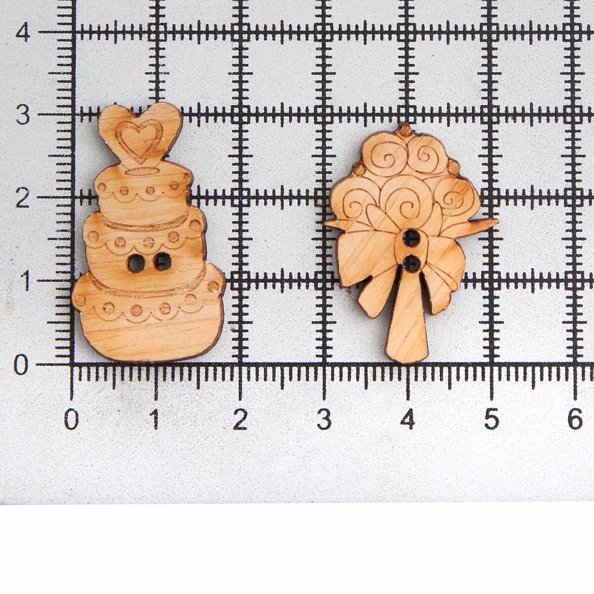 Купить Пуговицы фигурные Magic Buttons 'Букет и торт', 29*21мм и 31*19мм, 2 прокола, дерево, 2 шт