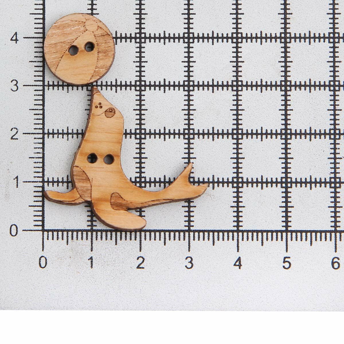 Пуговицы фигурные Magic Buttons 'Морской котик и мяч', 31*32мм и 15мм, 2 прокола, дерево, 6 шт