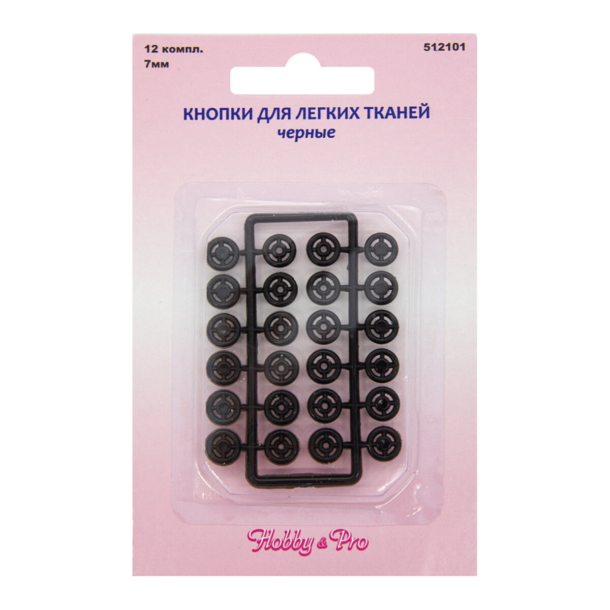 Купить Кнопки пришивные пластиковые для легких тканей Hobby&Pro, 512101, 7 мм, 12 комплектов (черные)