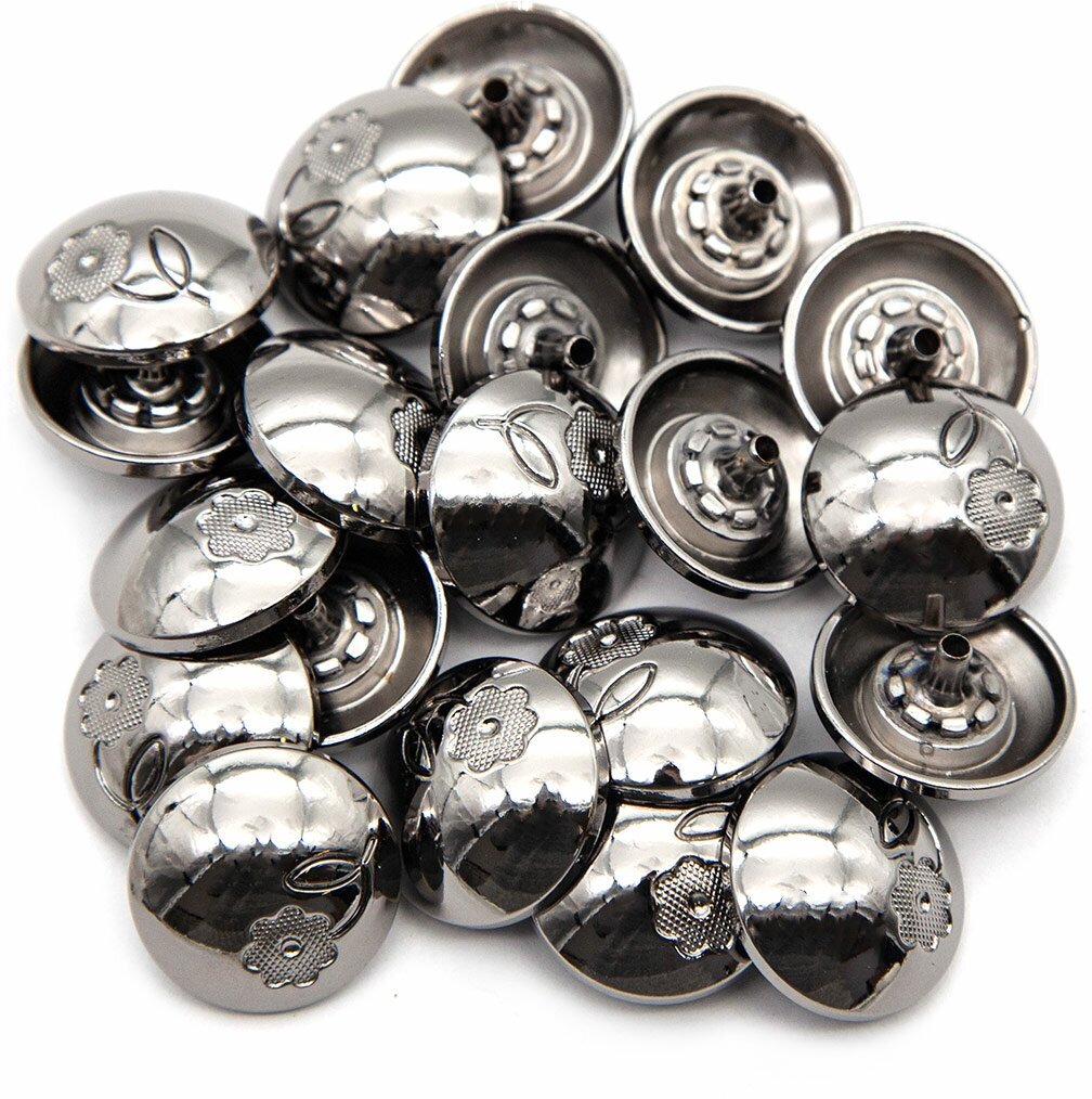 Купить Часть S-образной кнопки для одежды BIG 'Полусфера с цветком', 69637, 22 мм, часть А, металл (черный никель), 20 шт