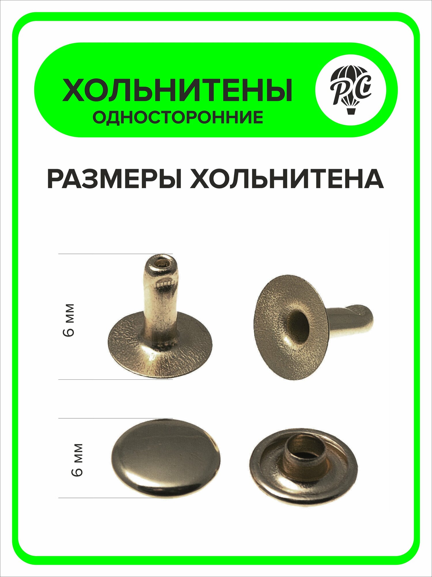 Хольнитены односторонние 6 мм, заклепки серебристый 25 штук