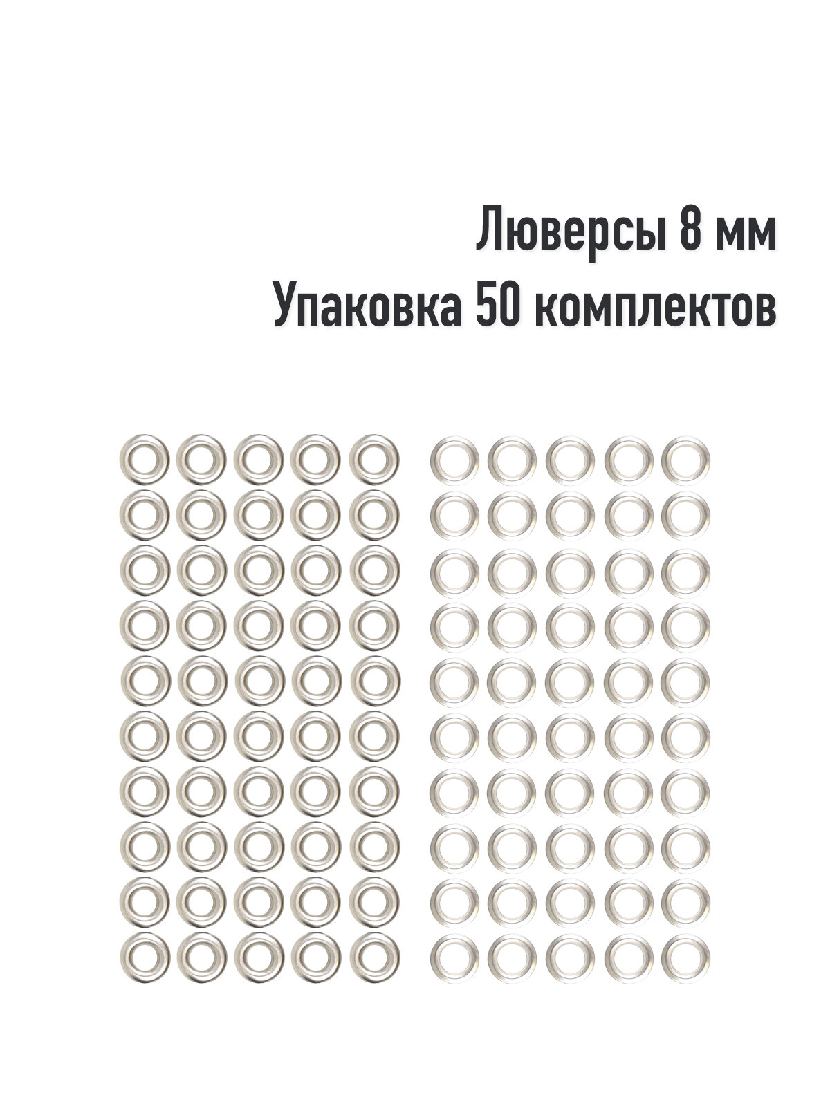 Люверсы 8 мм(упаковка 50 штук). Цвет: Никель. Производство Турция. интересное: