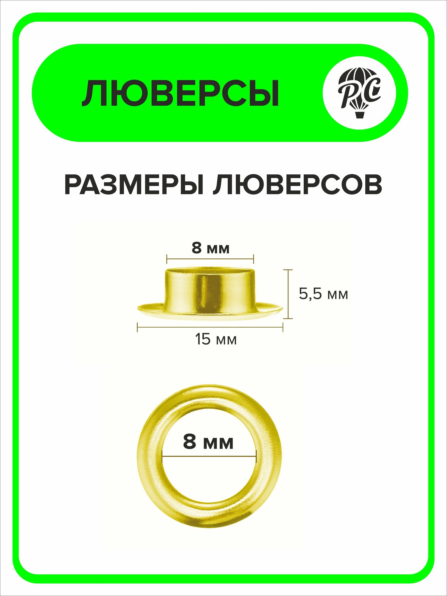 Люверсы 8мм, цвет: Золото, 50шт