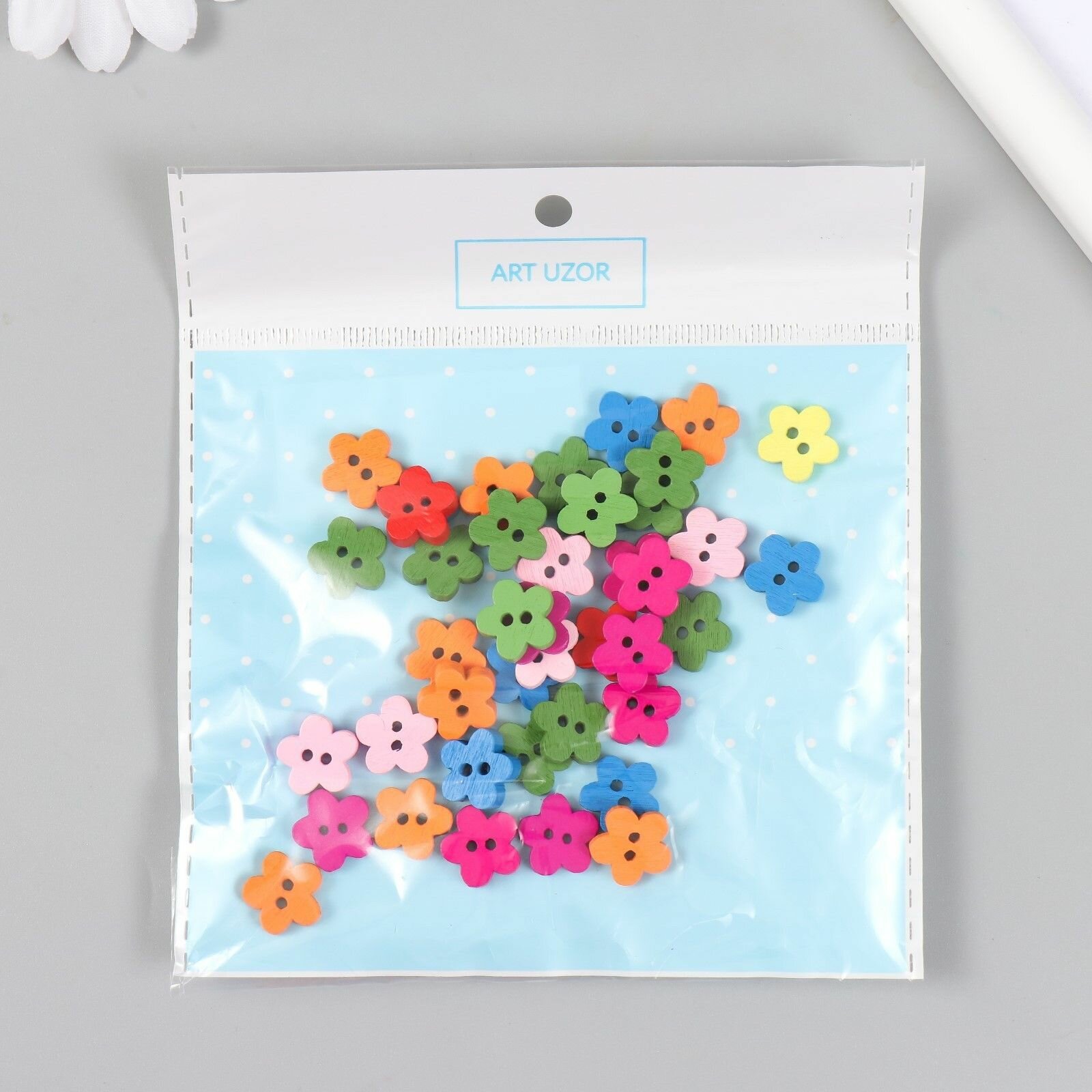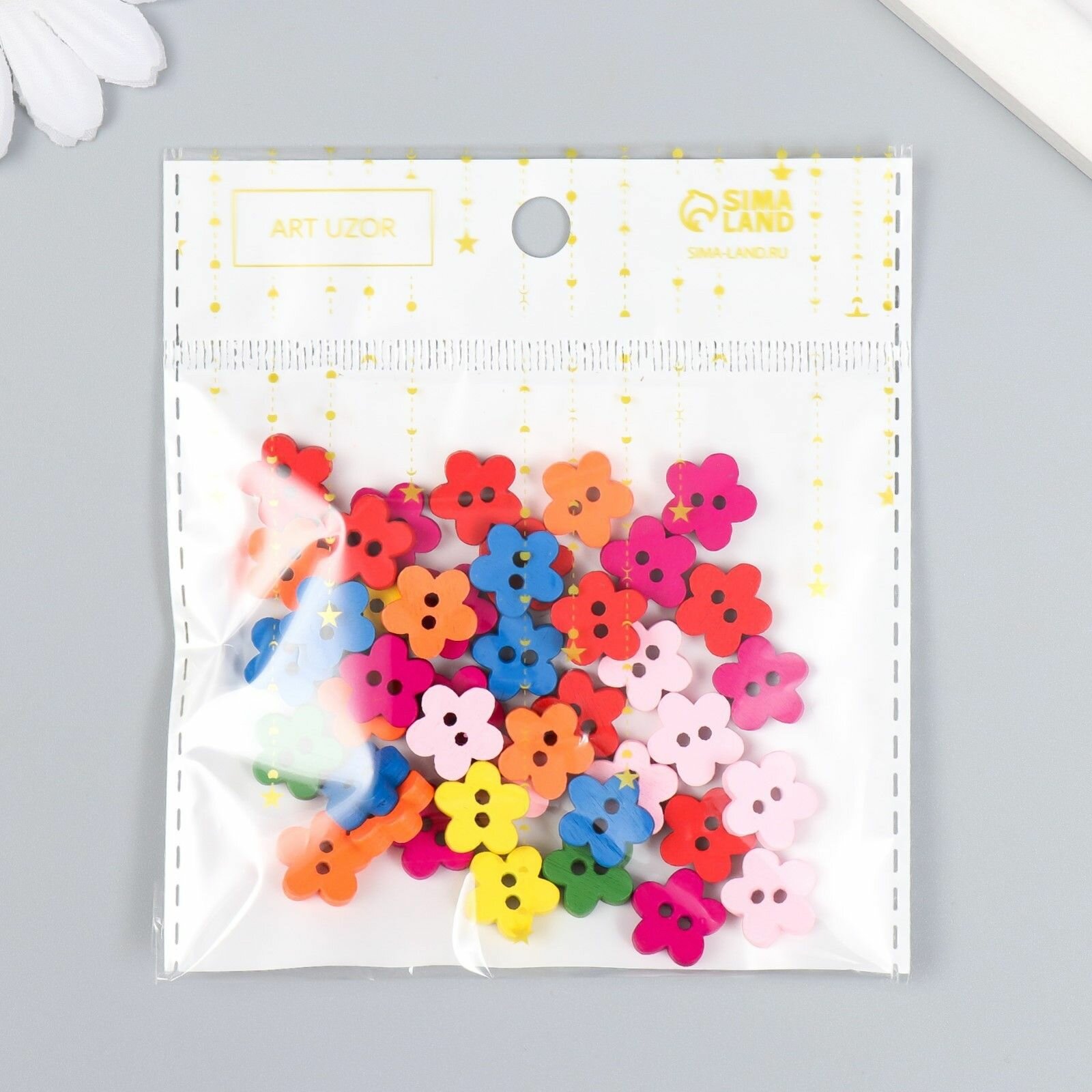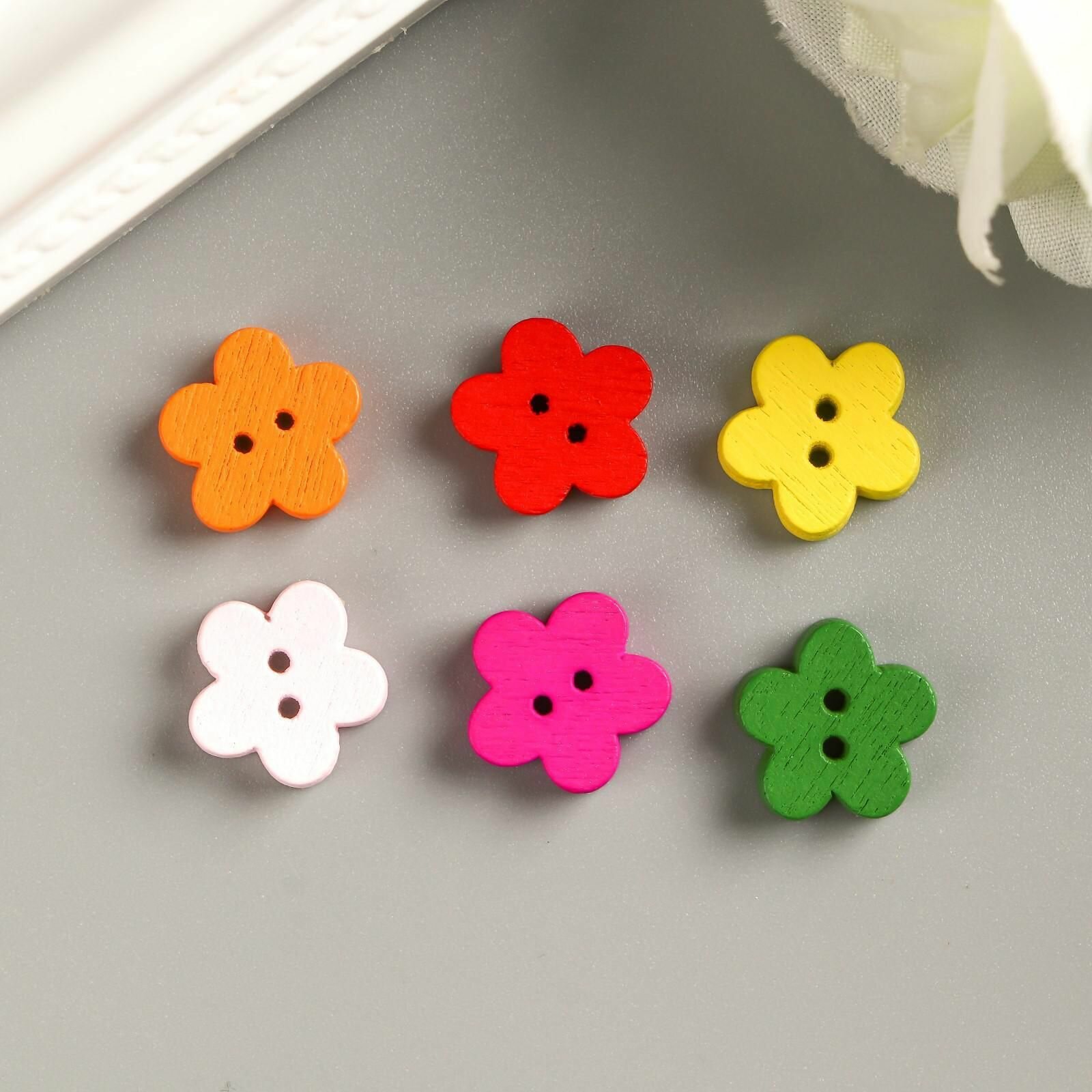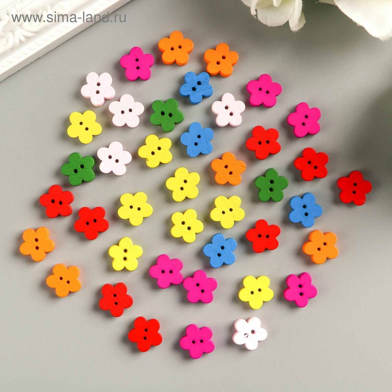 Купить Пуговицы дерево для творчества 2 прокола "Цветочки" набор 40 шт 1,1х1,1 см