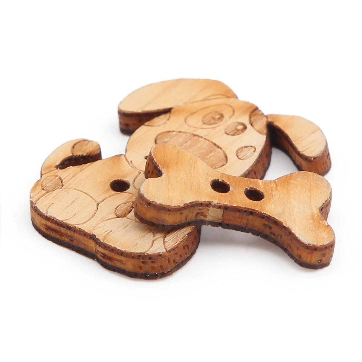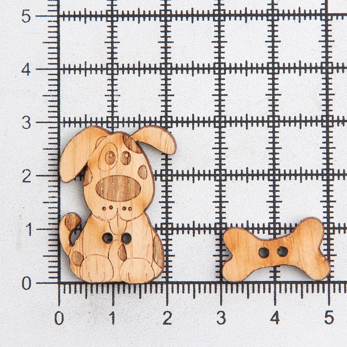 Пуговицы фигурные Magic Buttons 'Щенок и косточка', 30*22мм и 20*12мм, 2 прокола, дерево, 6 шт