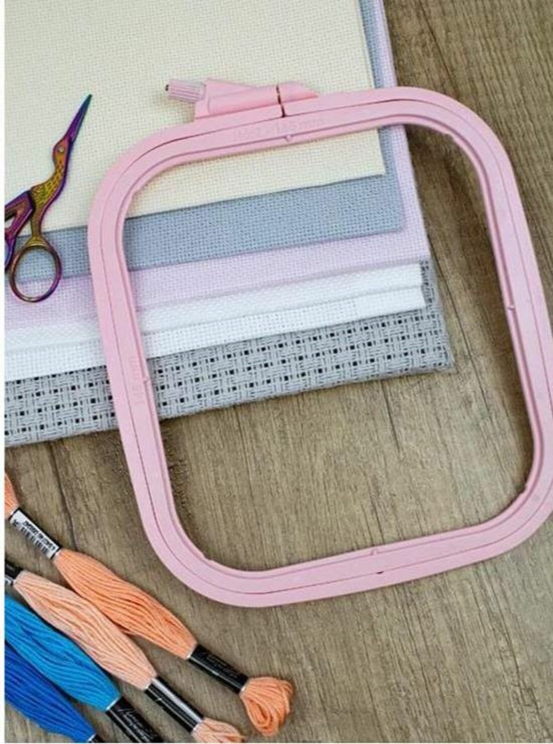 170-11 Пяльцы-рамка квадрат пластиковые Nurge 110*95 мм. розовые интересное: