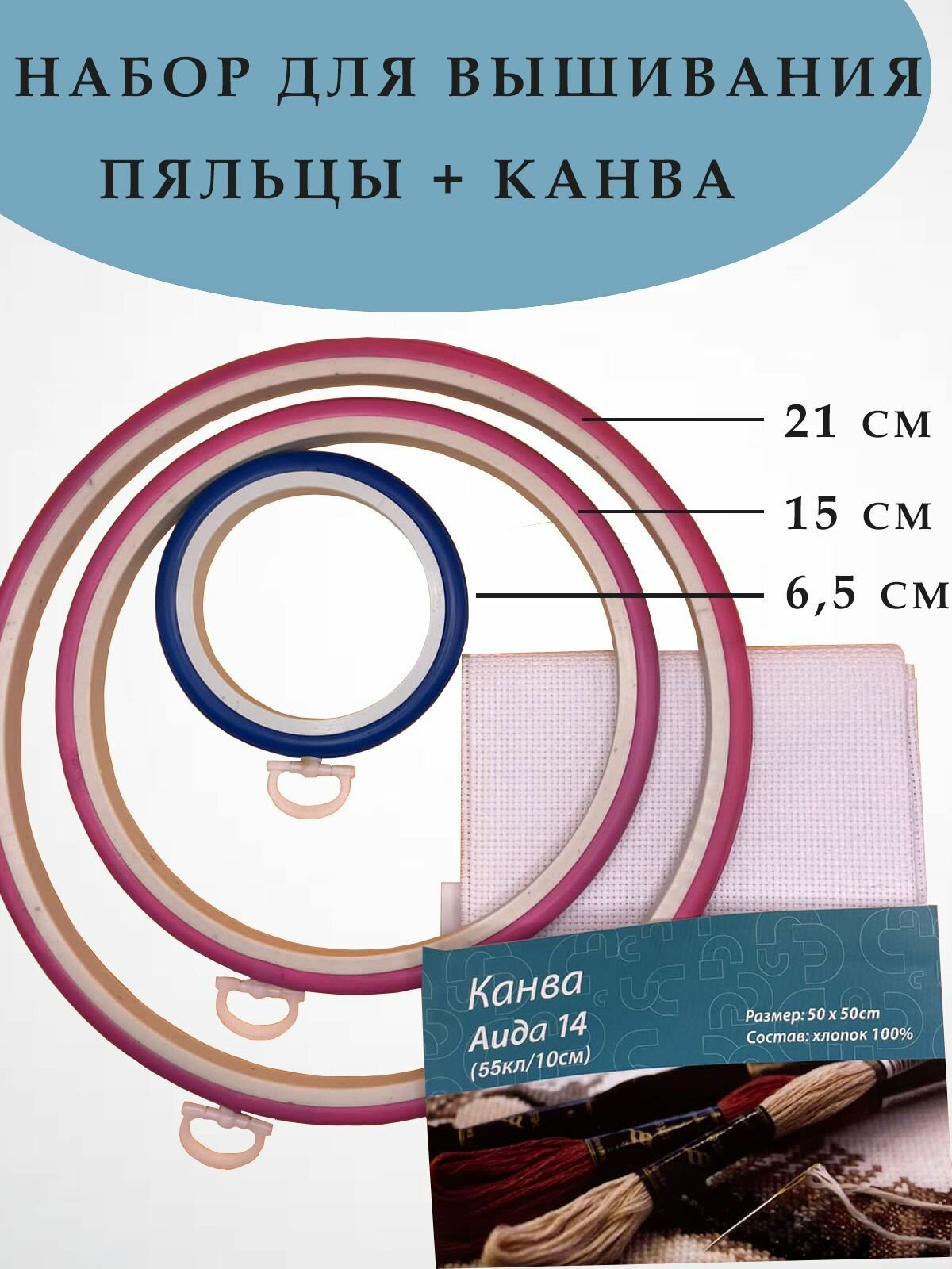 Купить Набор для вышивания: пяльцы пластиковые 3 шт. (6,5 см, 15 см, 21 см.), канва 50х50 см.