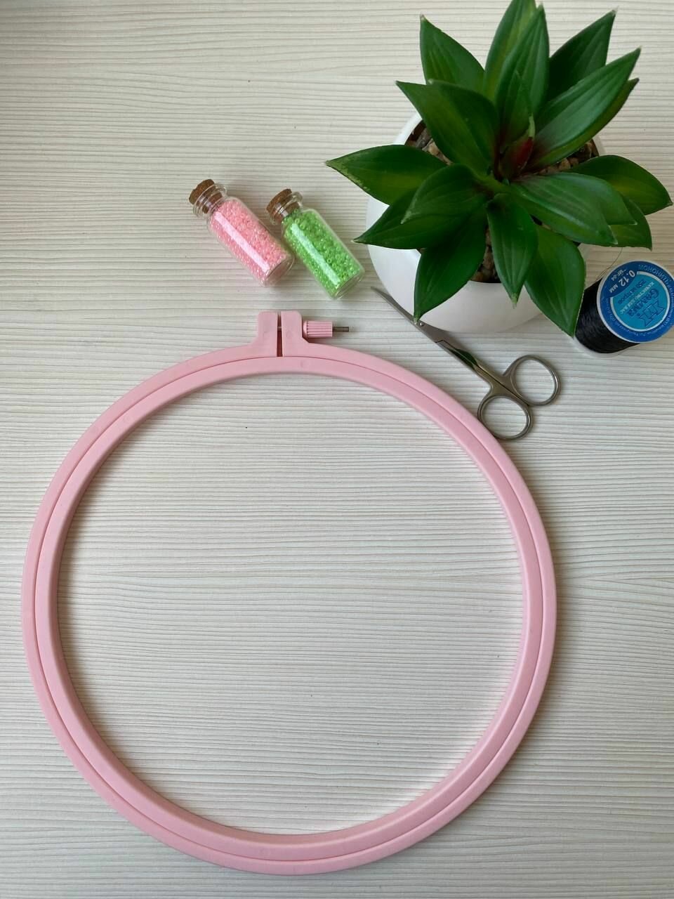 170-2/розовые Пяльцы Nurge пластиковые с винтом, высота обода 9мм, диаметр 228мм интересное: