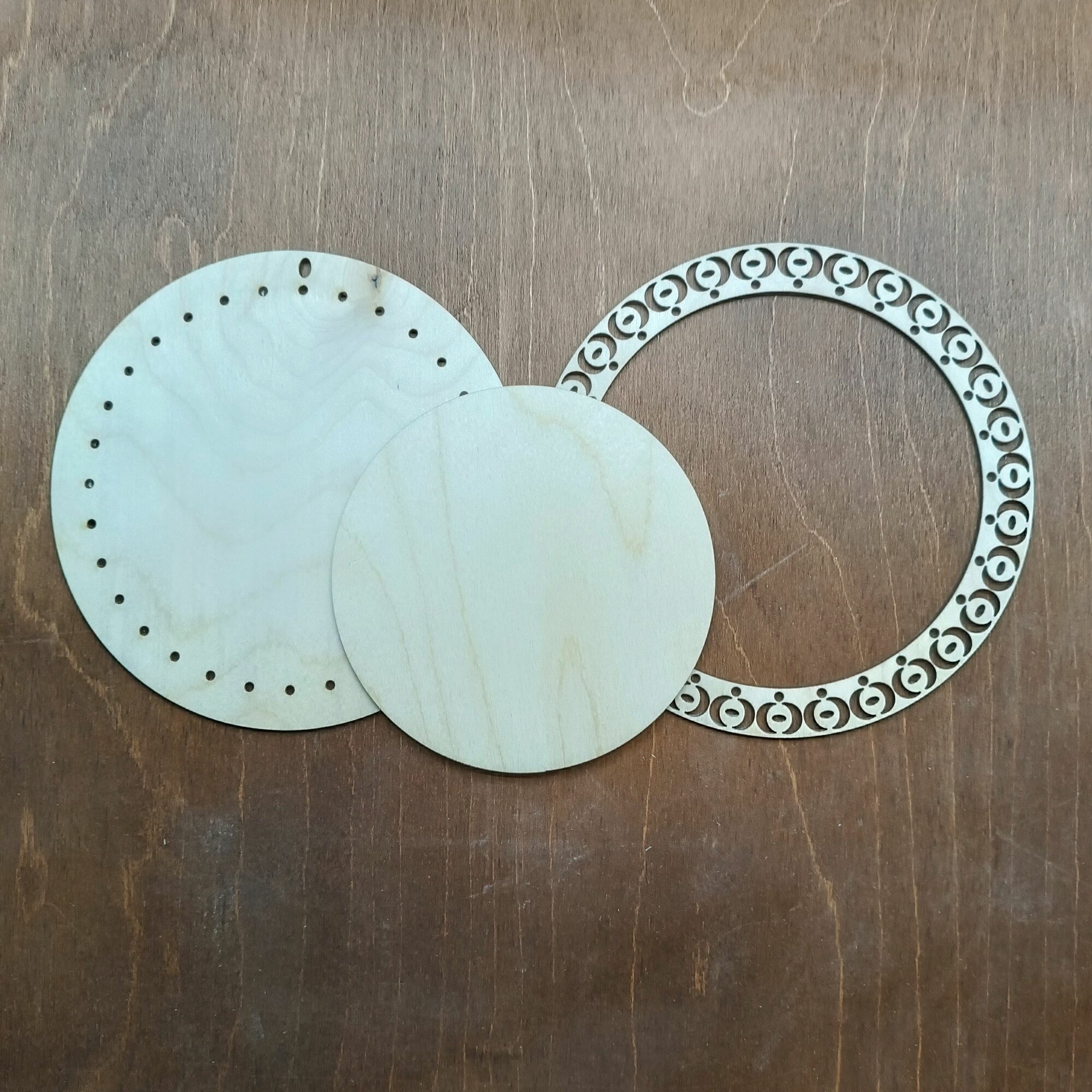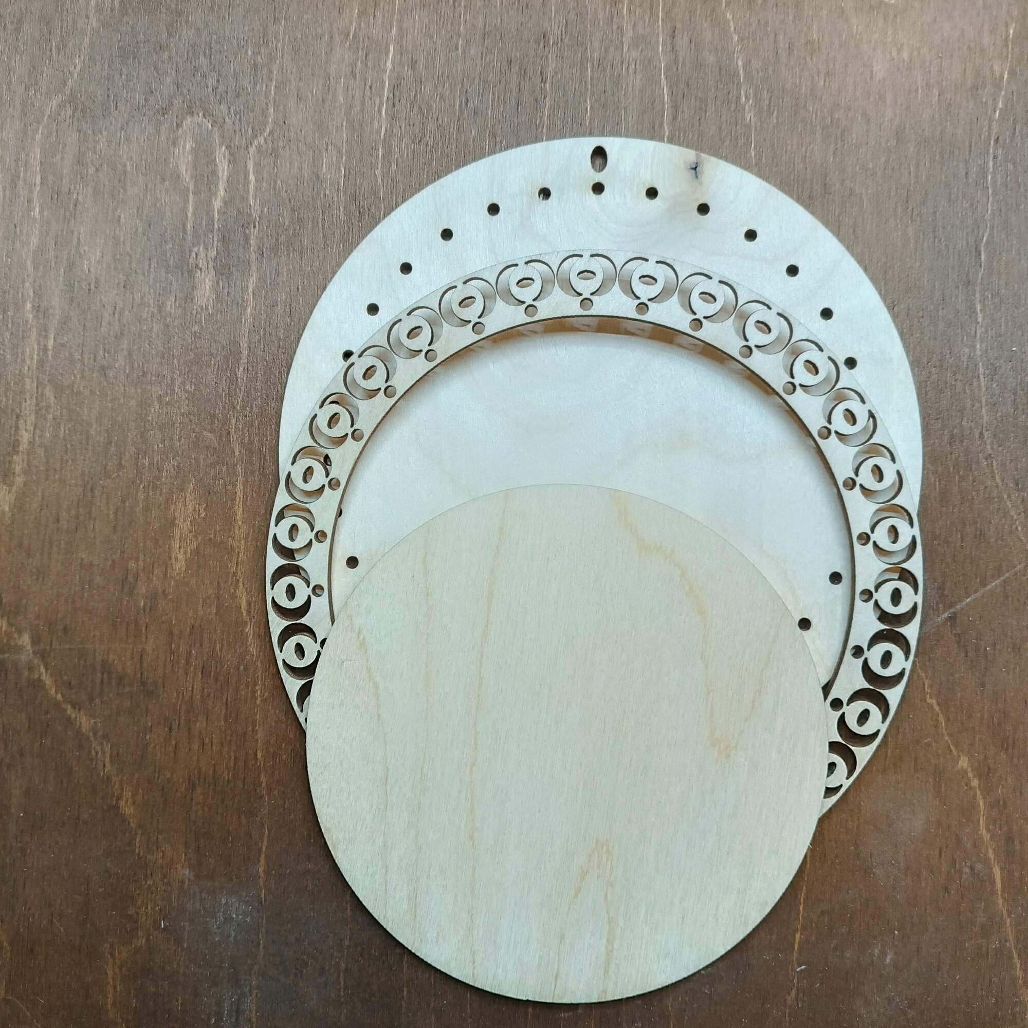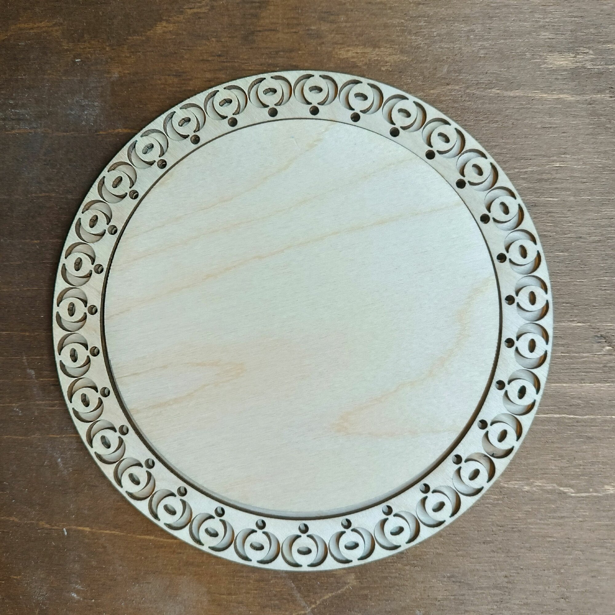 Деревянная рамка для оформления вышивки круглая большая Орнамент 22 см.