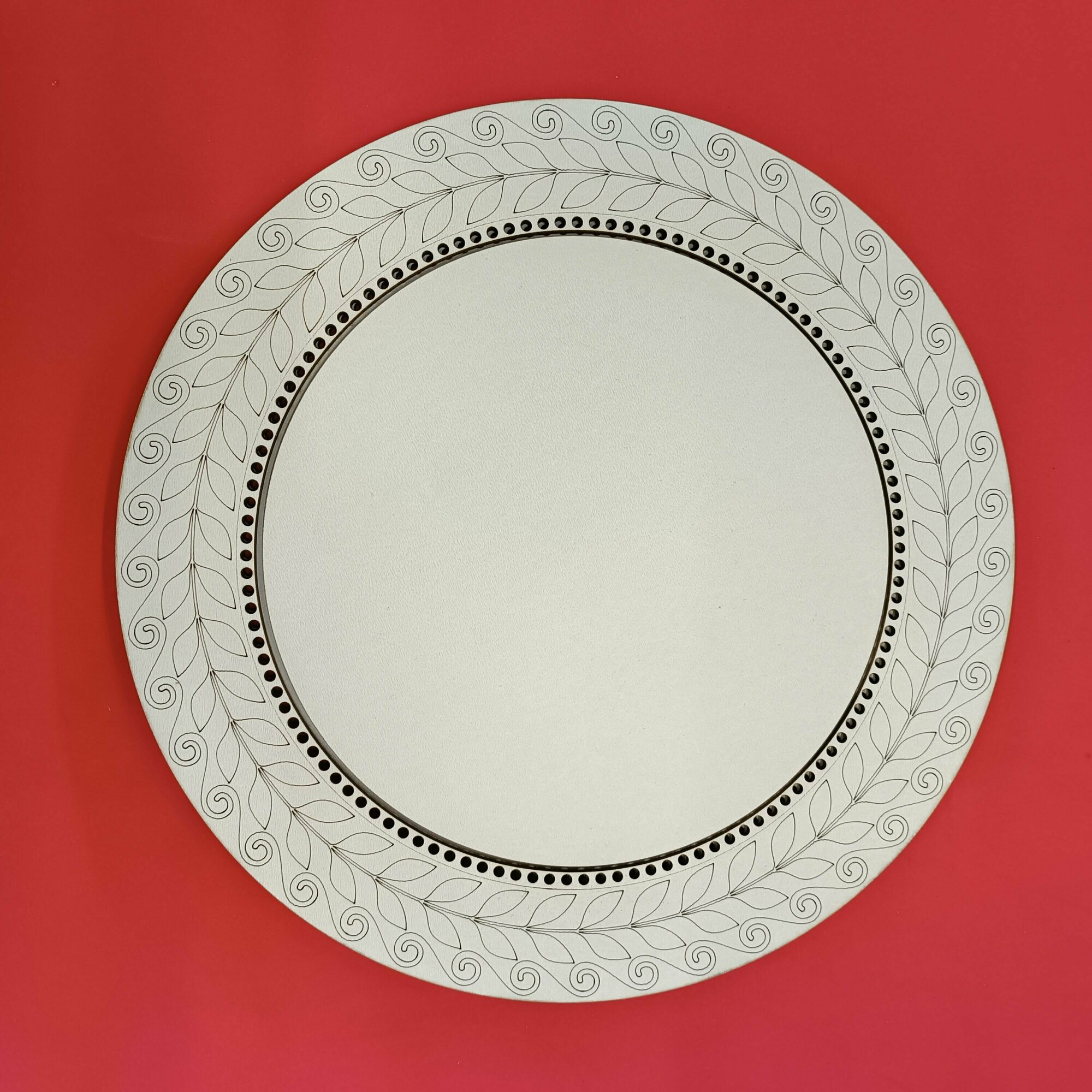 Деревянная рамка для оформления вышивки круглая большая Орнамент 22 см.
