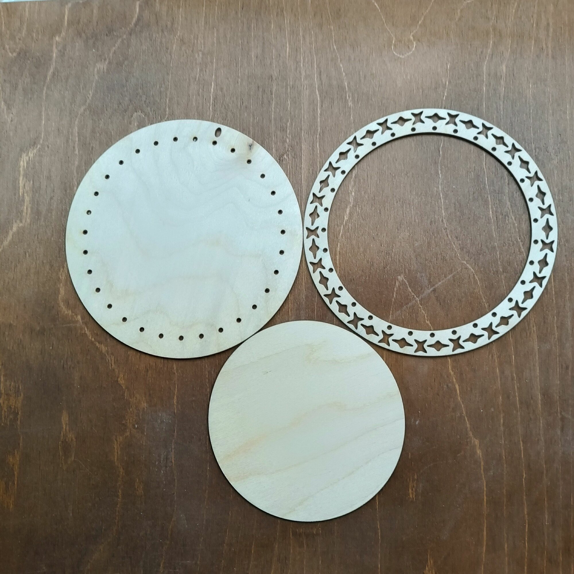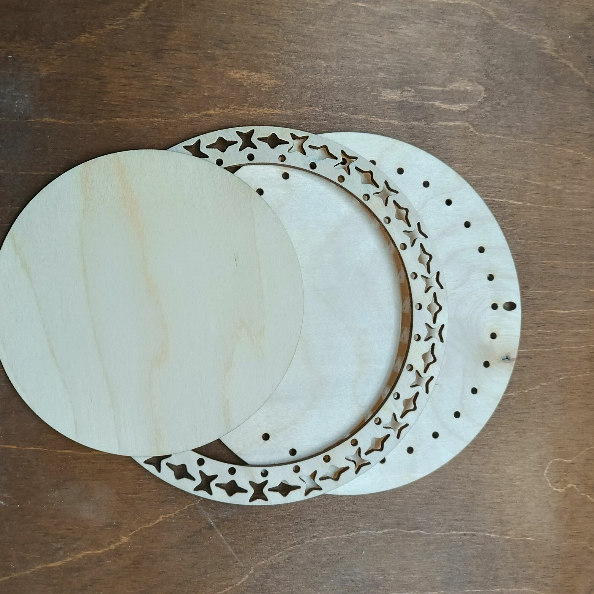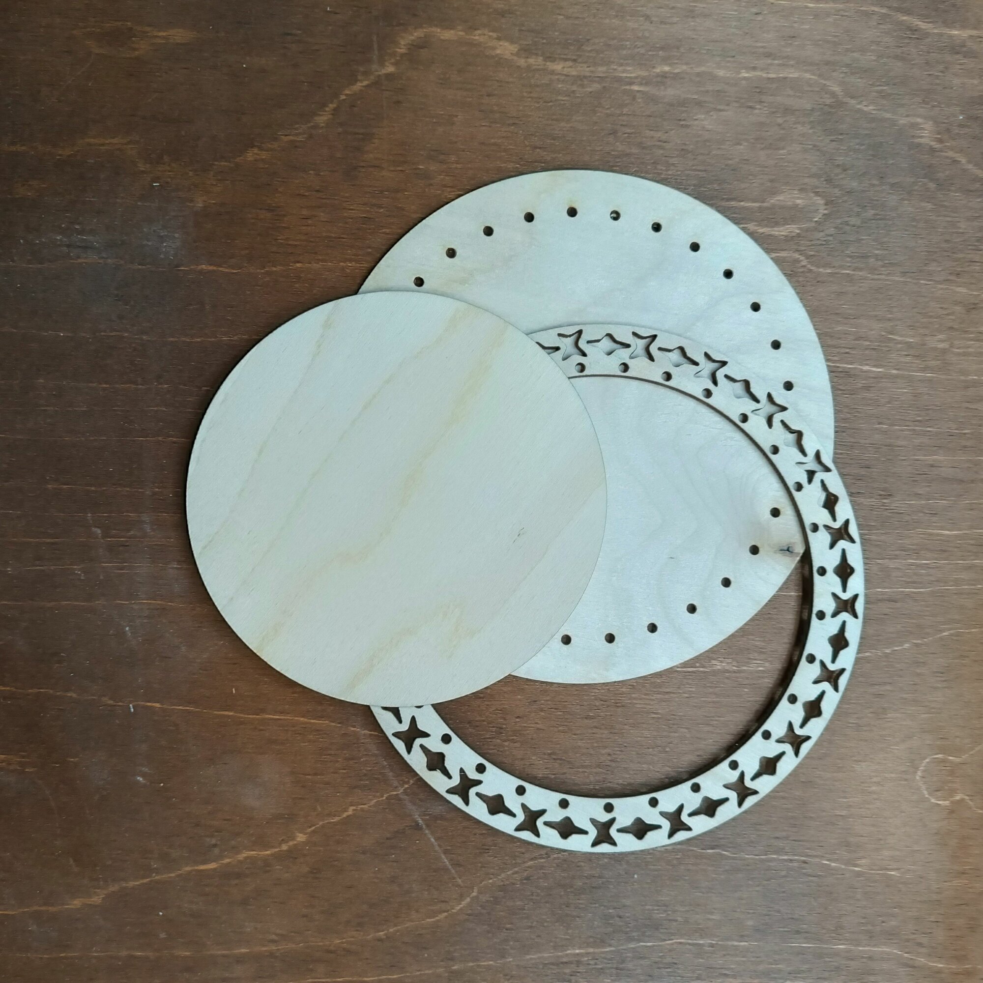 Деревянная рамка для оформления вышивки круглая большая Орнамент 22 см.