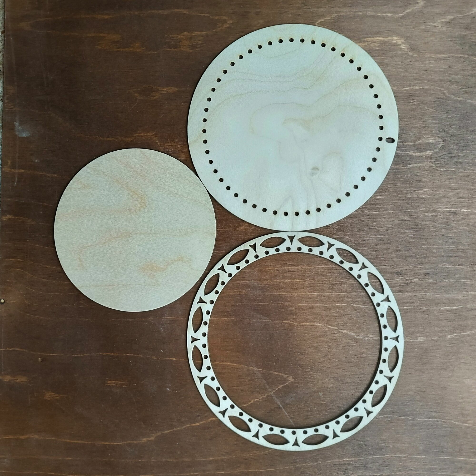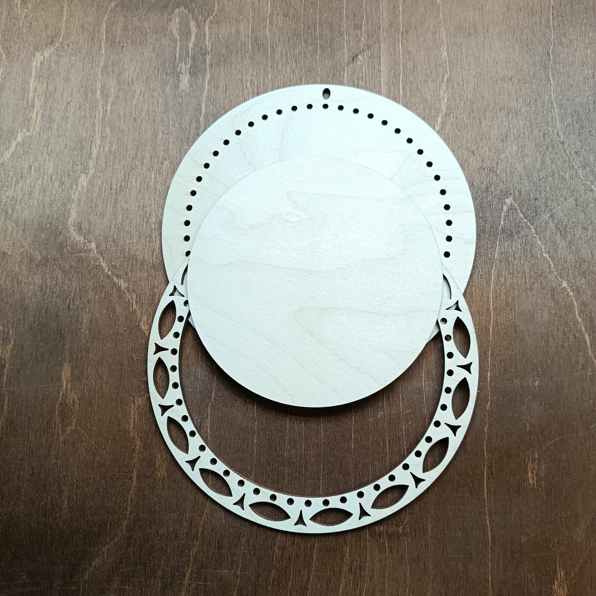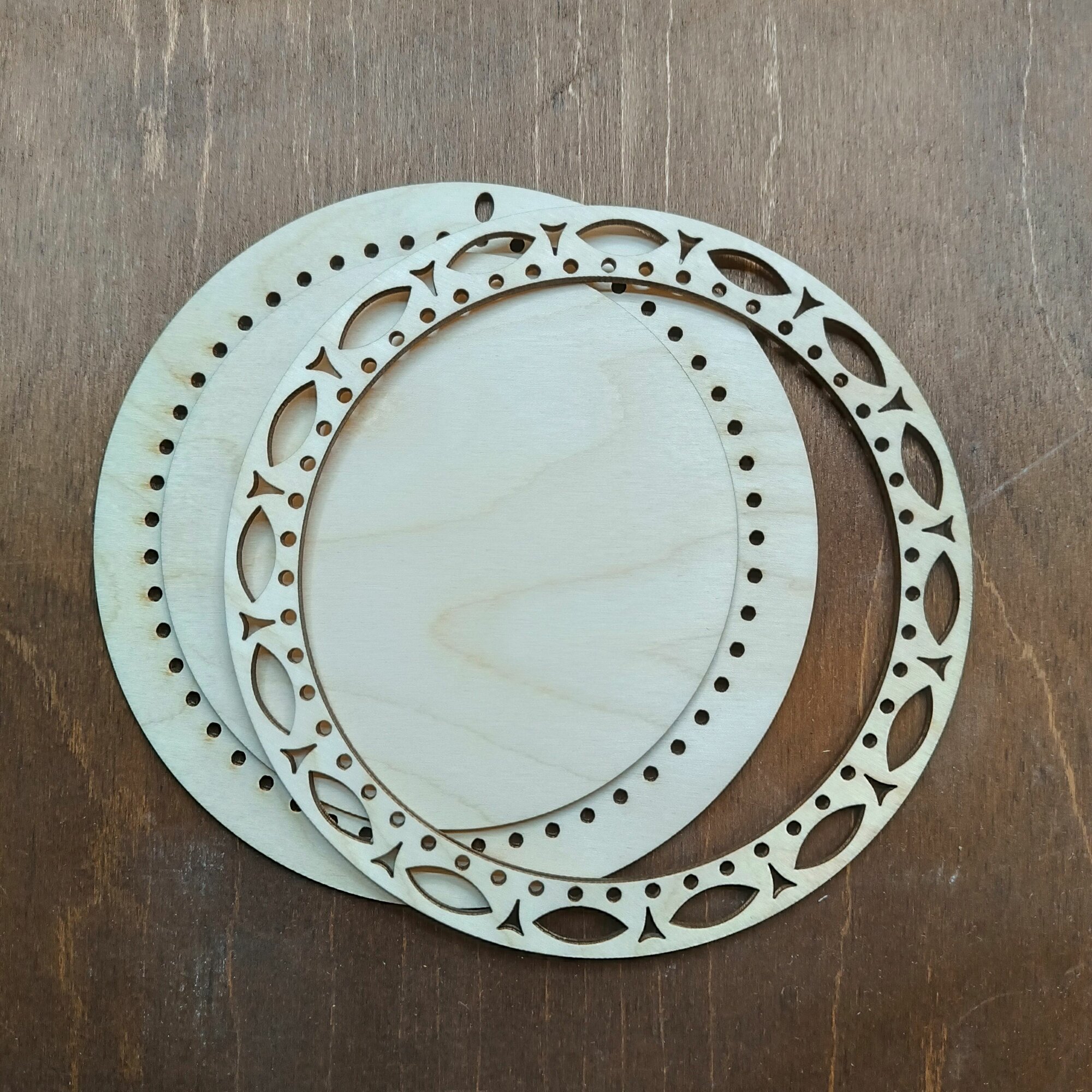 Деревянная рамка для оформления вышивки круглая большая Орнамент 22 см.