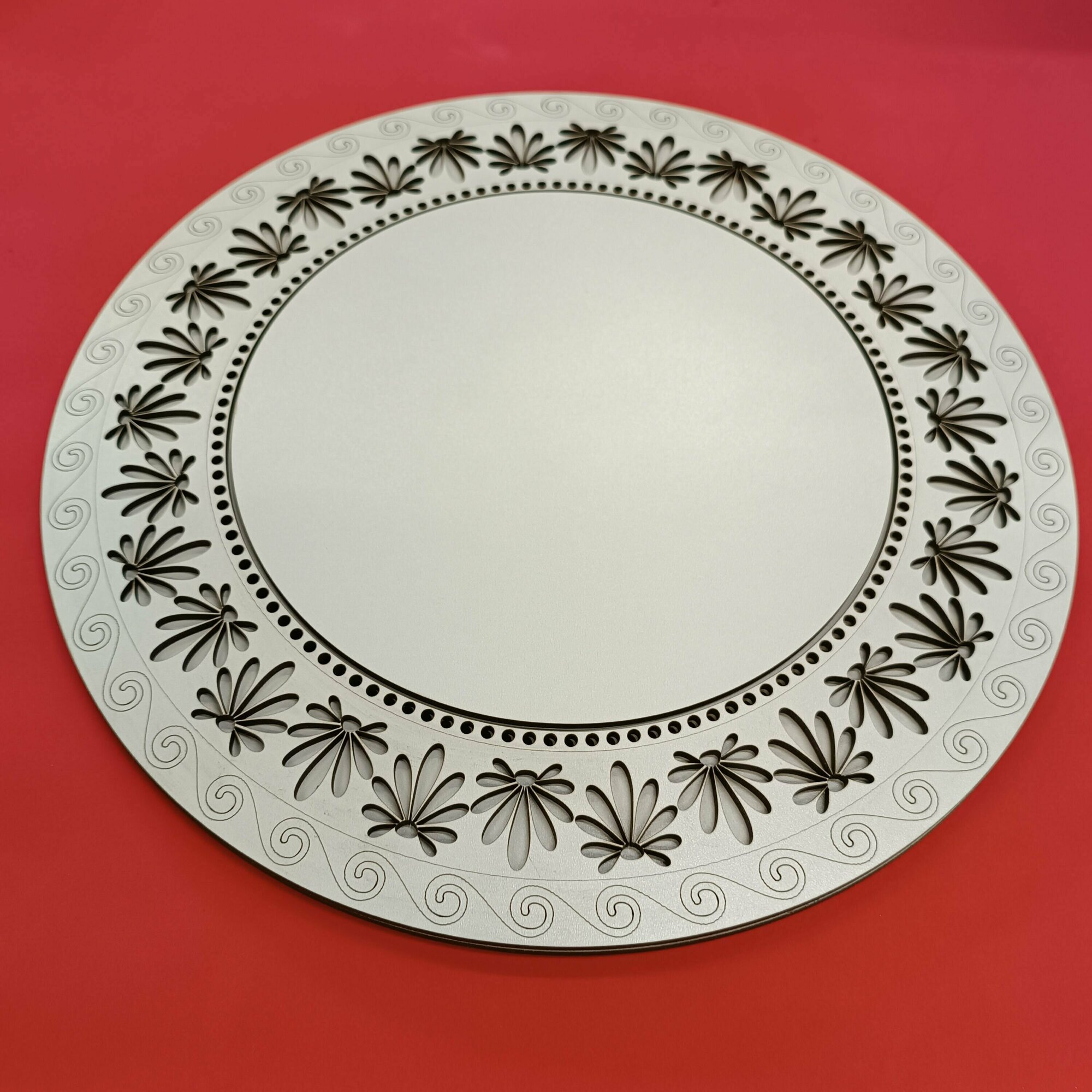 Деревянная рамка для оформления вышивки круглая большая Орнамент 22 см.