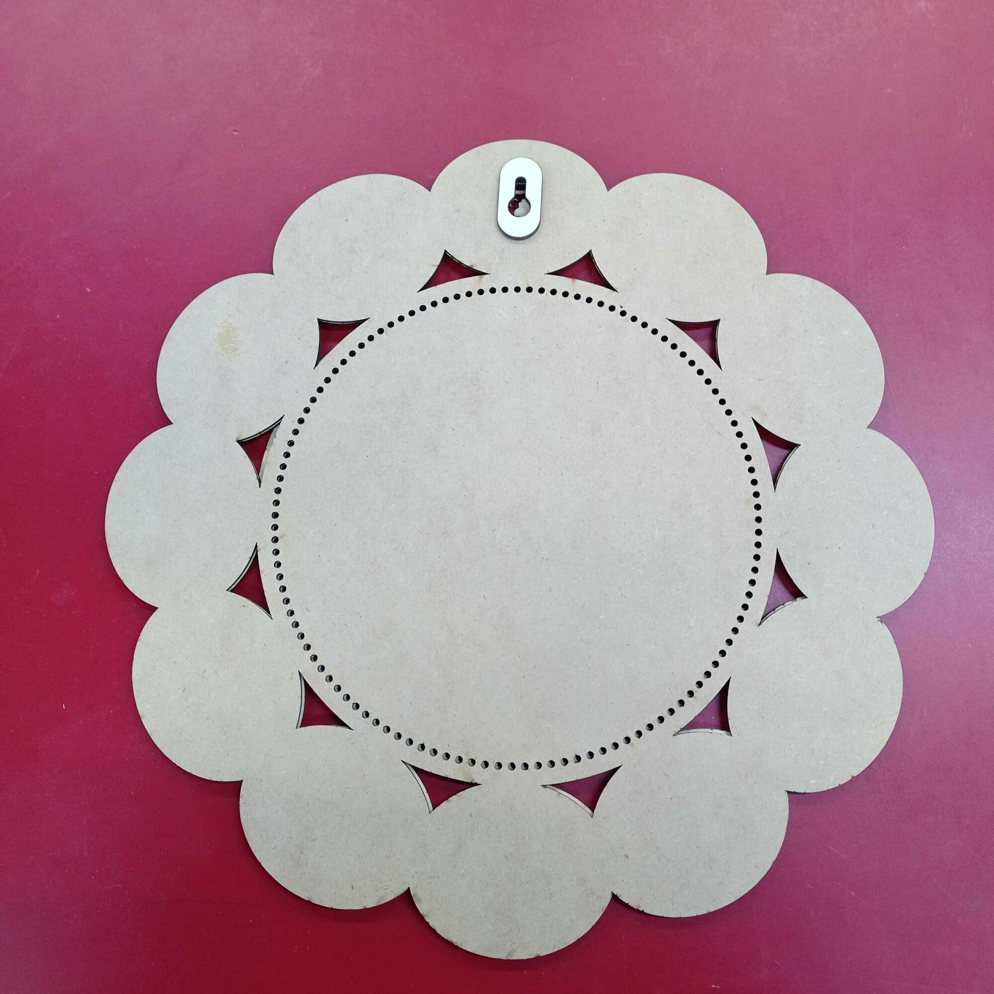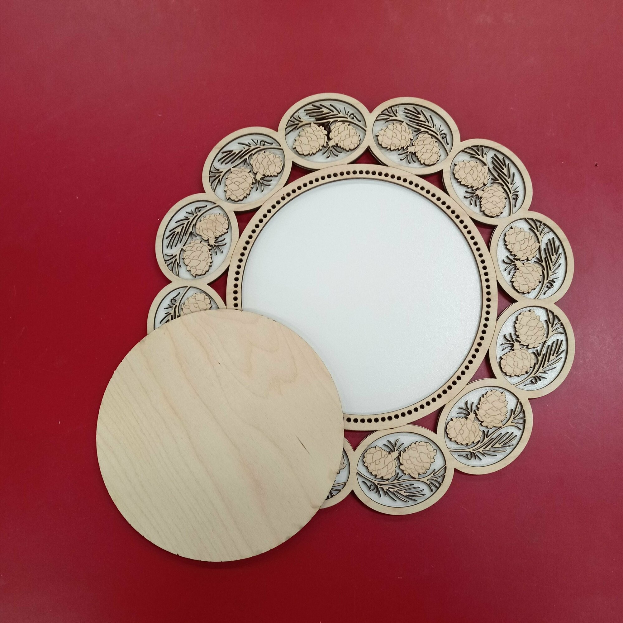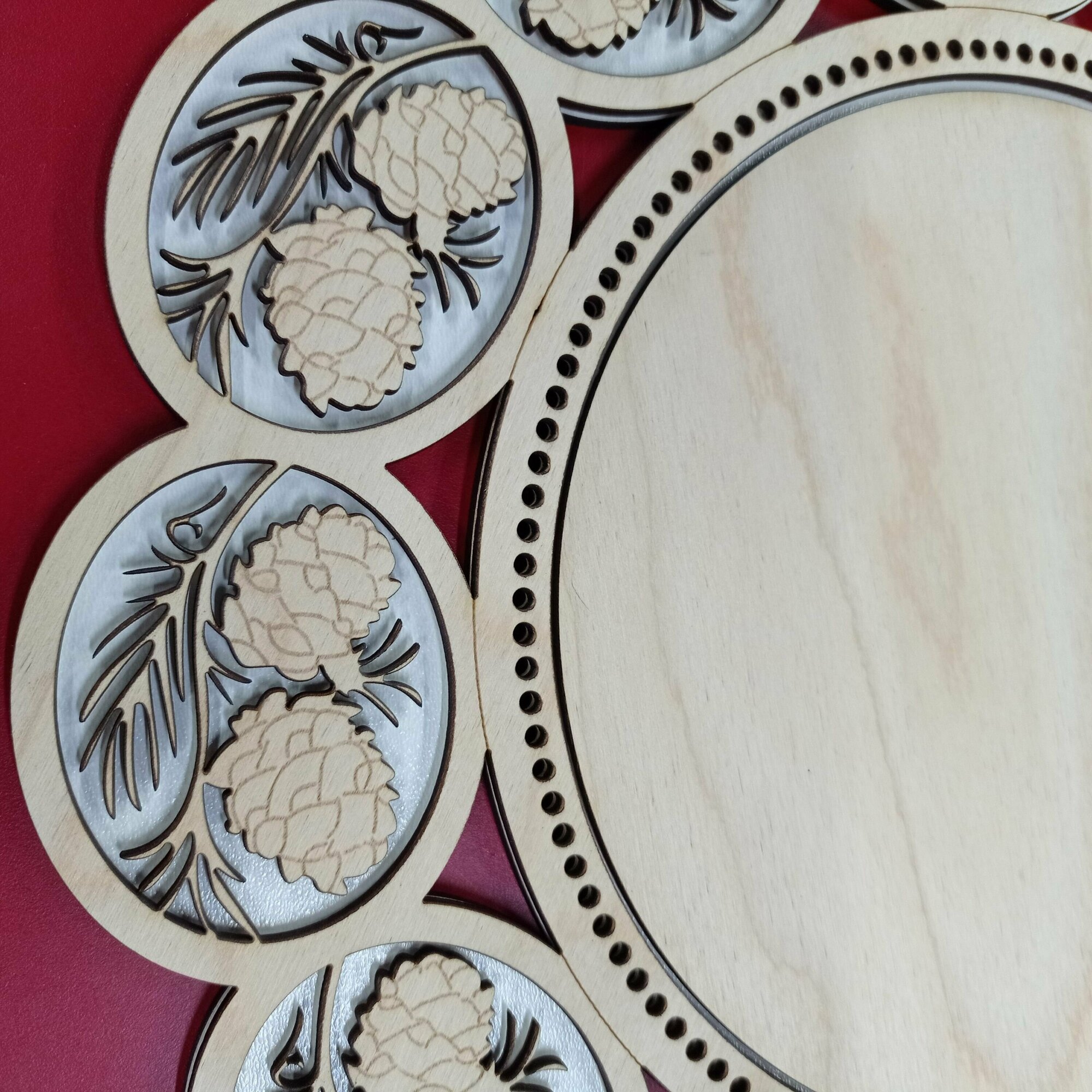 Деревянная рамка для оформления вышивки круглая большая Орнамент 22 см.