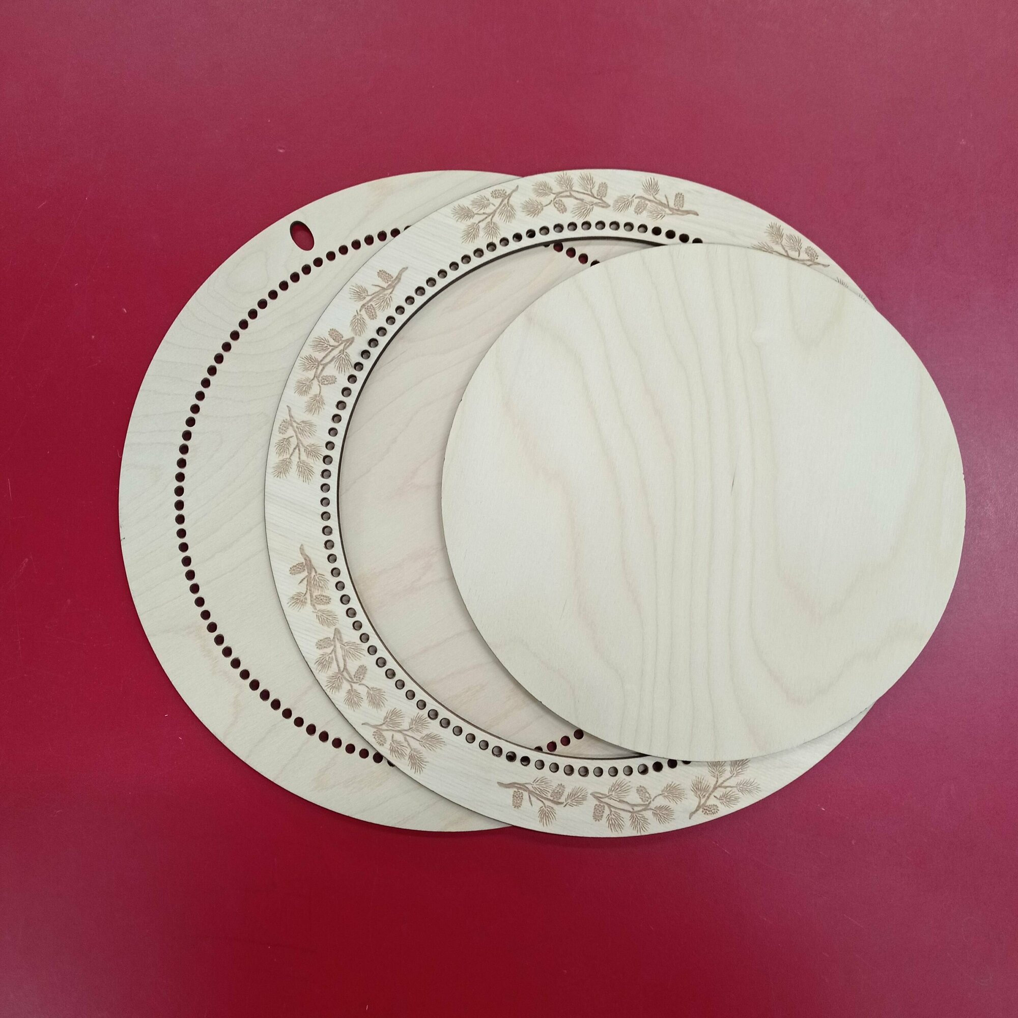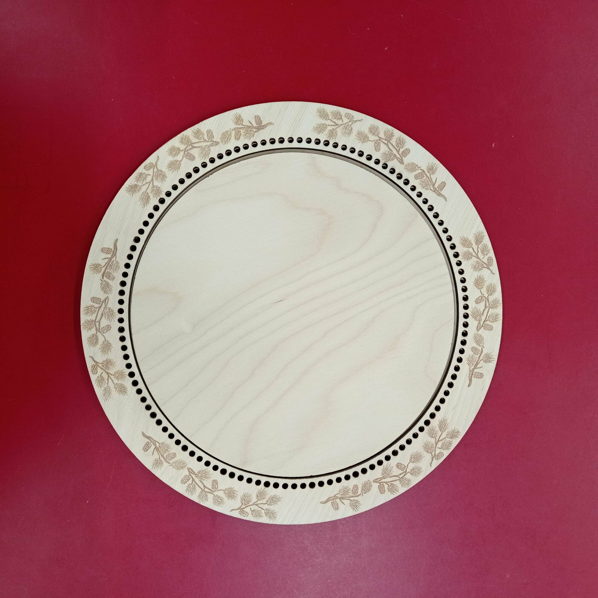 Деревянная рамка для оформления вышивки круглая большая Орнамент 22 см.