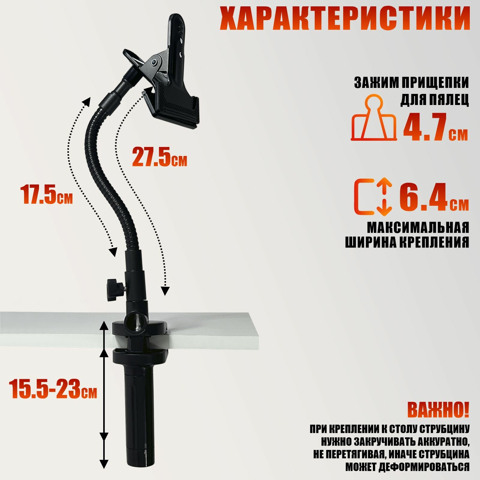 Держатель для пялец PR1-G-STR64 на гибком креплении и струбцине с зажимом 6,4 см интересное: