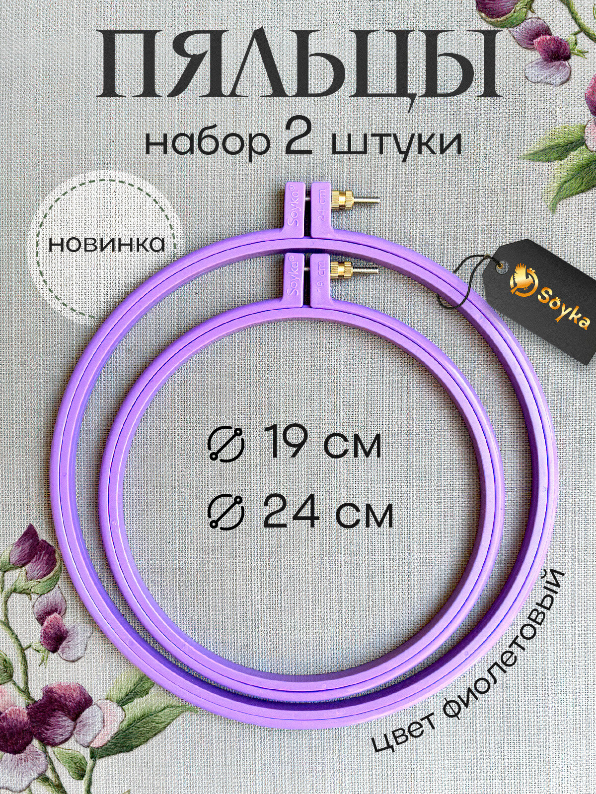 Набор пяльцы круглые 2шт, фиолетовые (диаметр 19см и 24см) интересное: