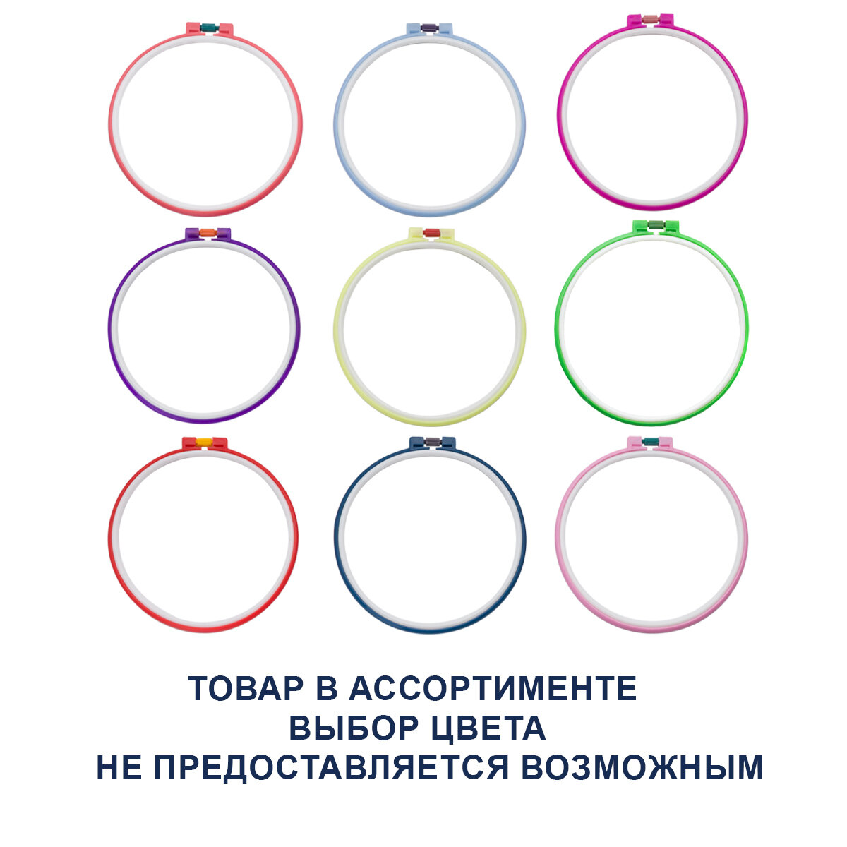 Пяльцы для вышивания круглые 21 см, 10 шт, пластик, цвета в ассортименте, Айрис