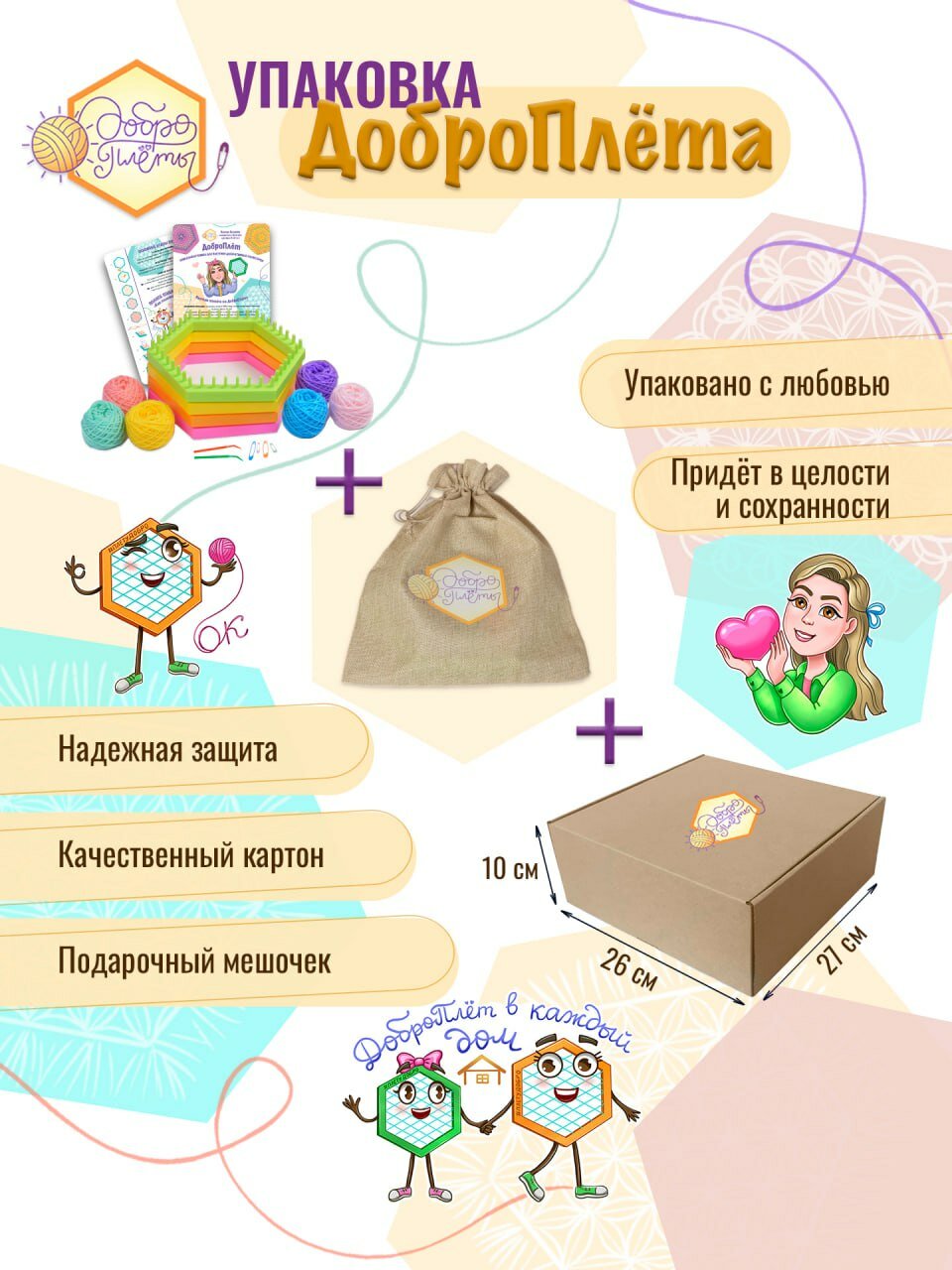 Набор для рукоделия «ДоброПлёты», рамки для плетения в подарочном мешочке с пряжей, инструкцией и видеоуроками интересное: