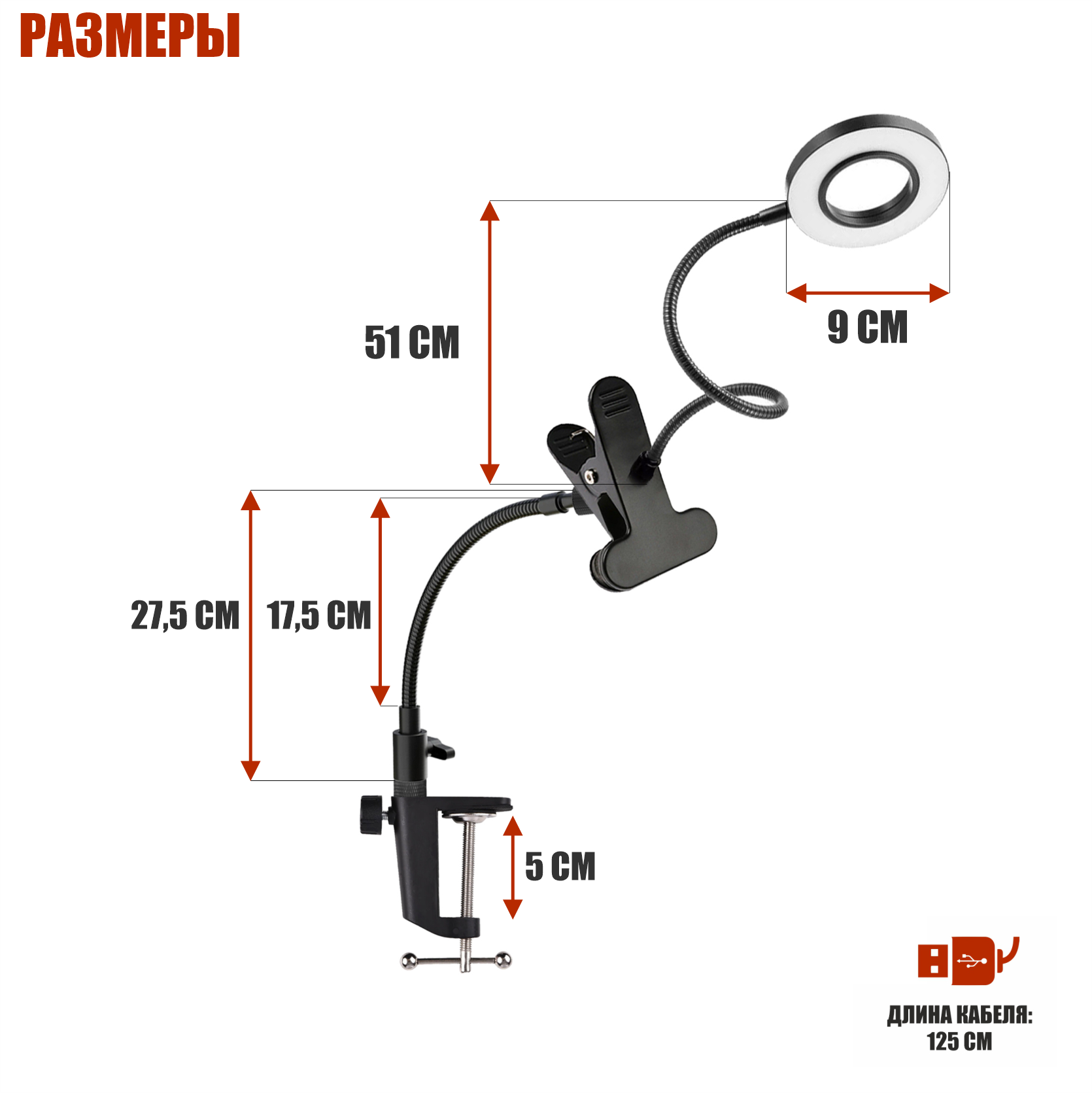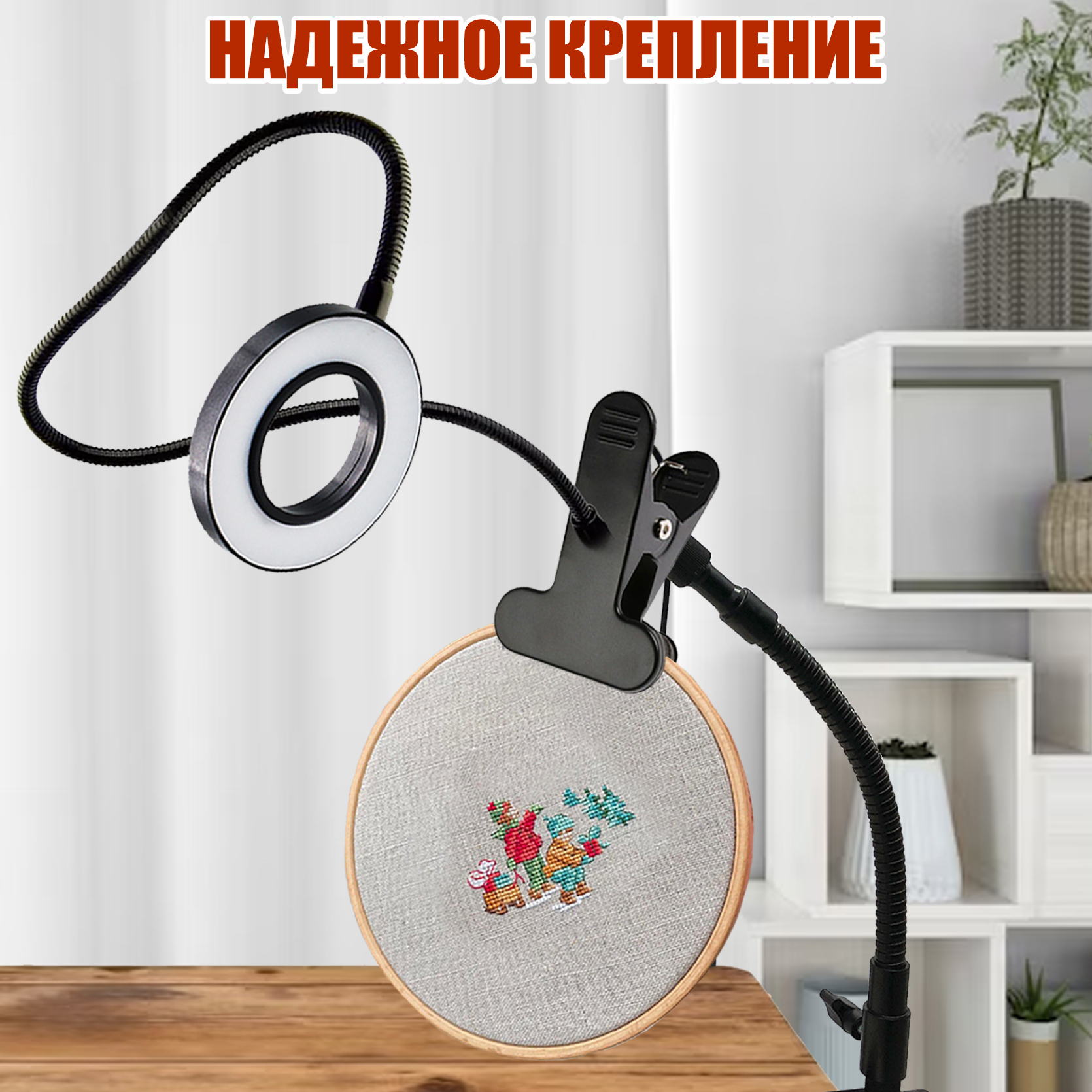 Настольный гибкий держатель USG-RL9BD для пялец, станок для вышивания c лампой 9 см на усиленной струбцине интересное: