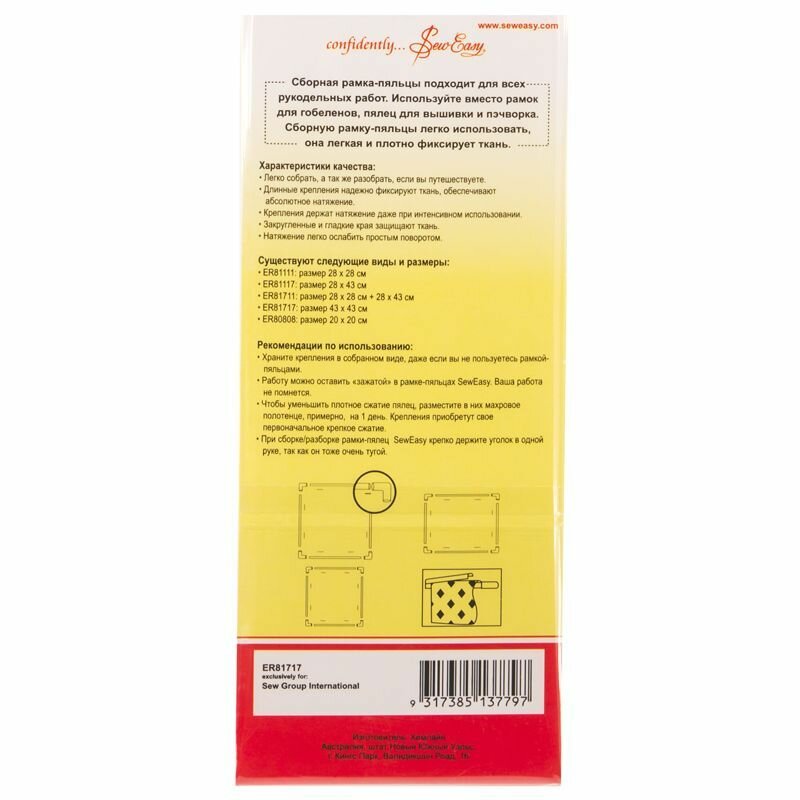 Рамка-пяльцы HEMLINE "SewEasy", сборная, 43х43 cм, белая интересное: