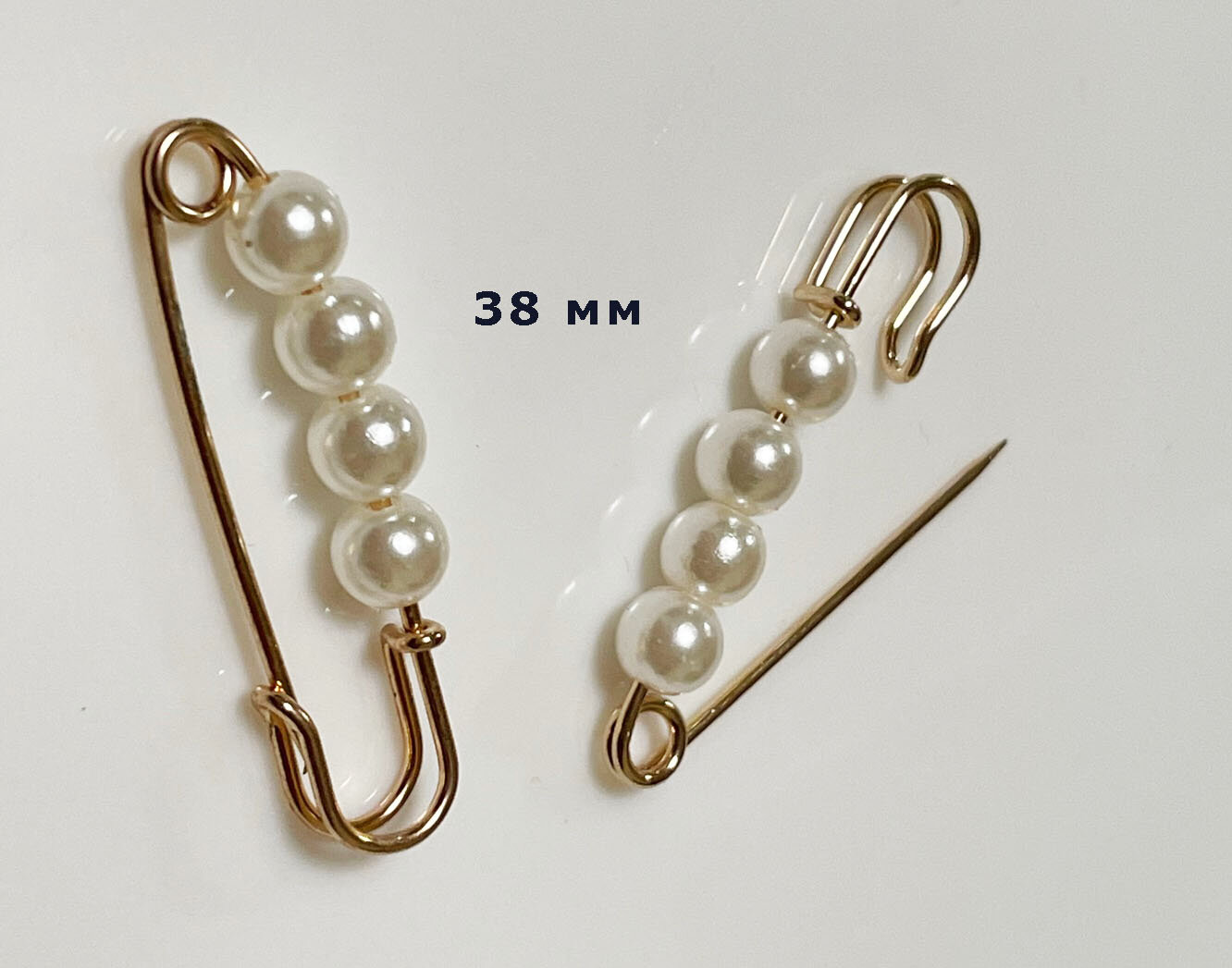 Съемные Металлические Булавки - для брюк, юбок и платьев (жемчужные, 3,8 см)