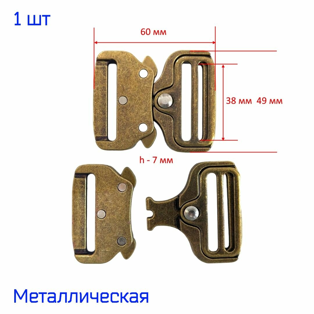 Застежка пряжка фастекс "Кобра" металлическая 50 мм, 1 штука, желтая